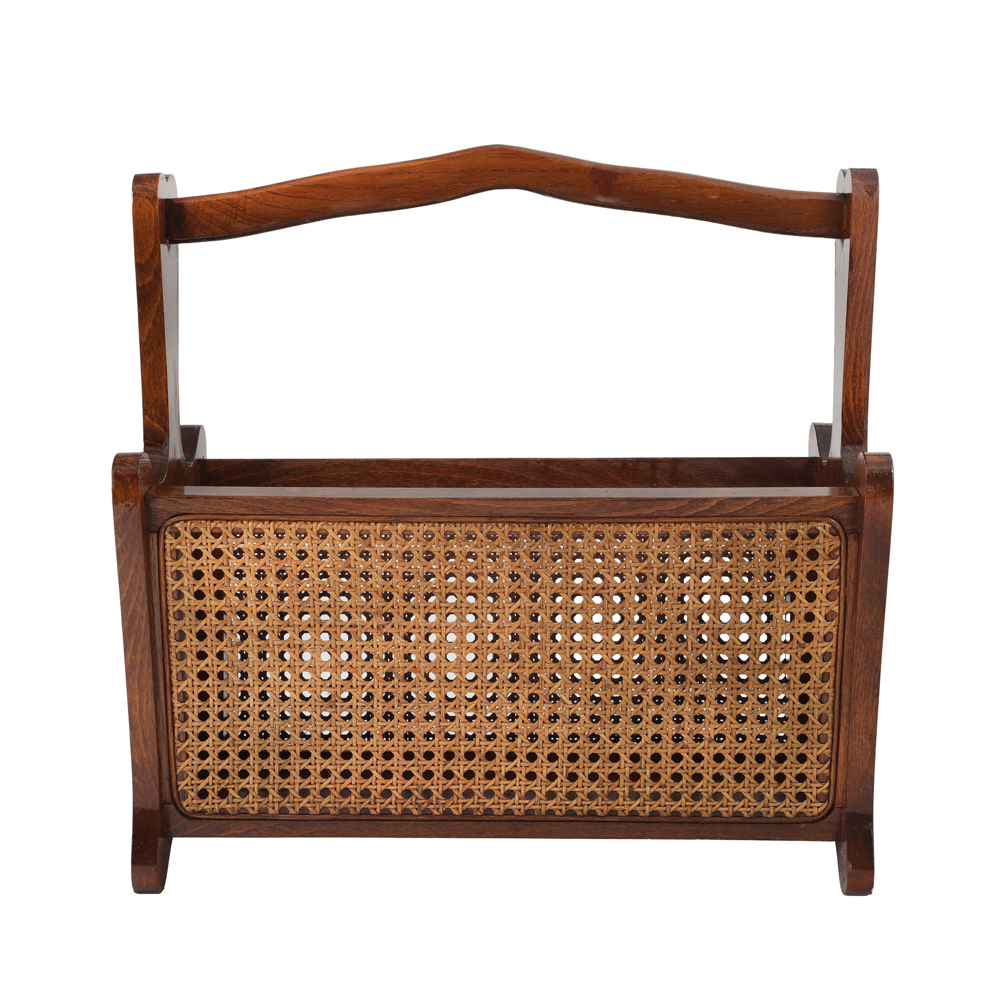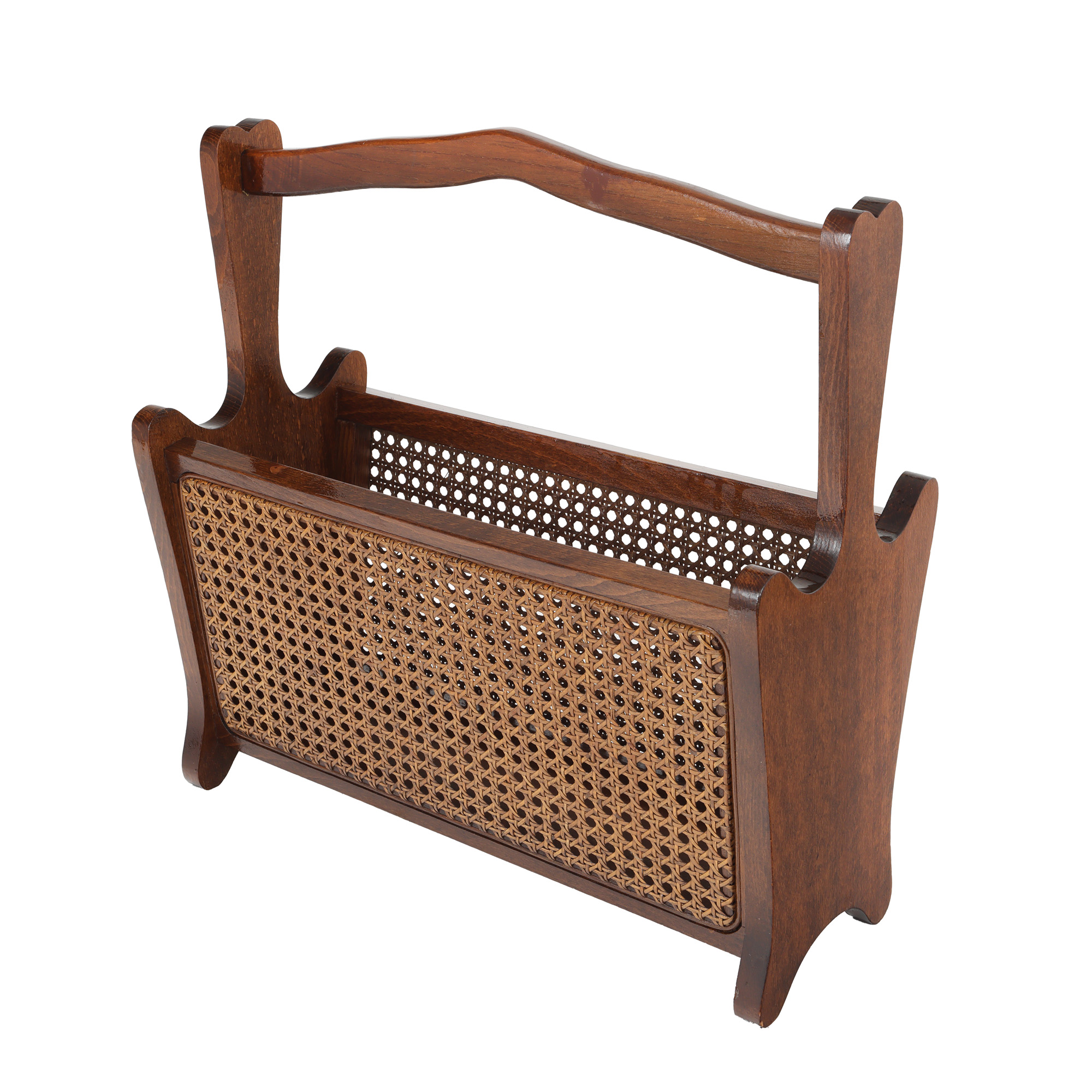 71. Suport pentru ziare și reviste, decorat cu împletitură de pai de Viena, cca. 1950-1960