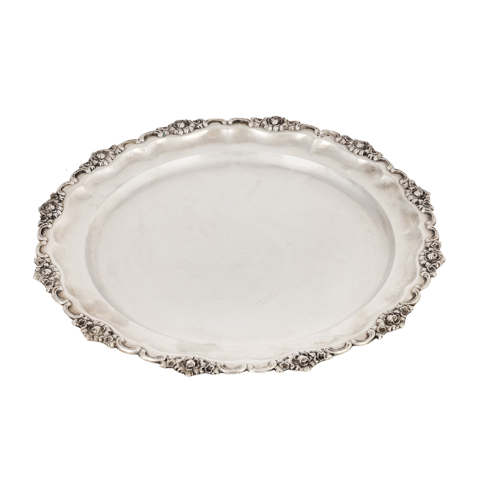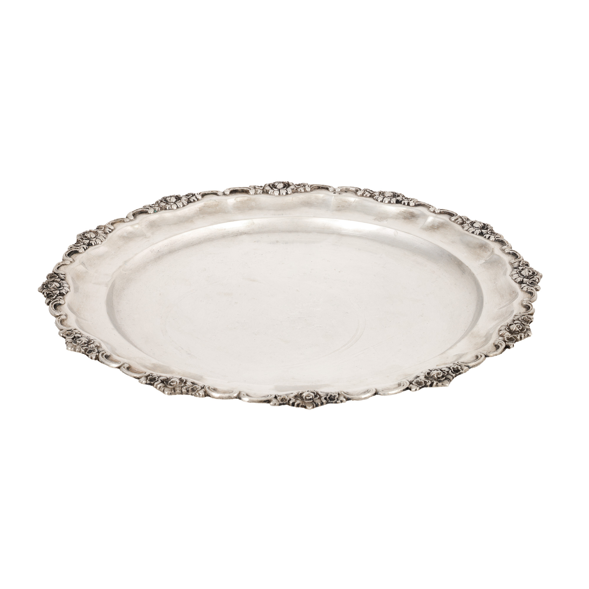 28. Tavă din argint, ornată cu bordură florală