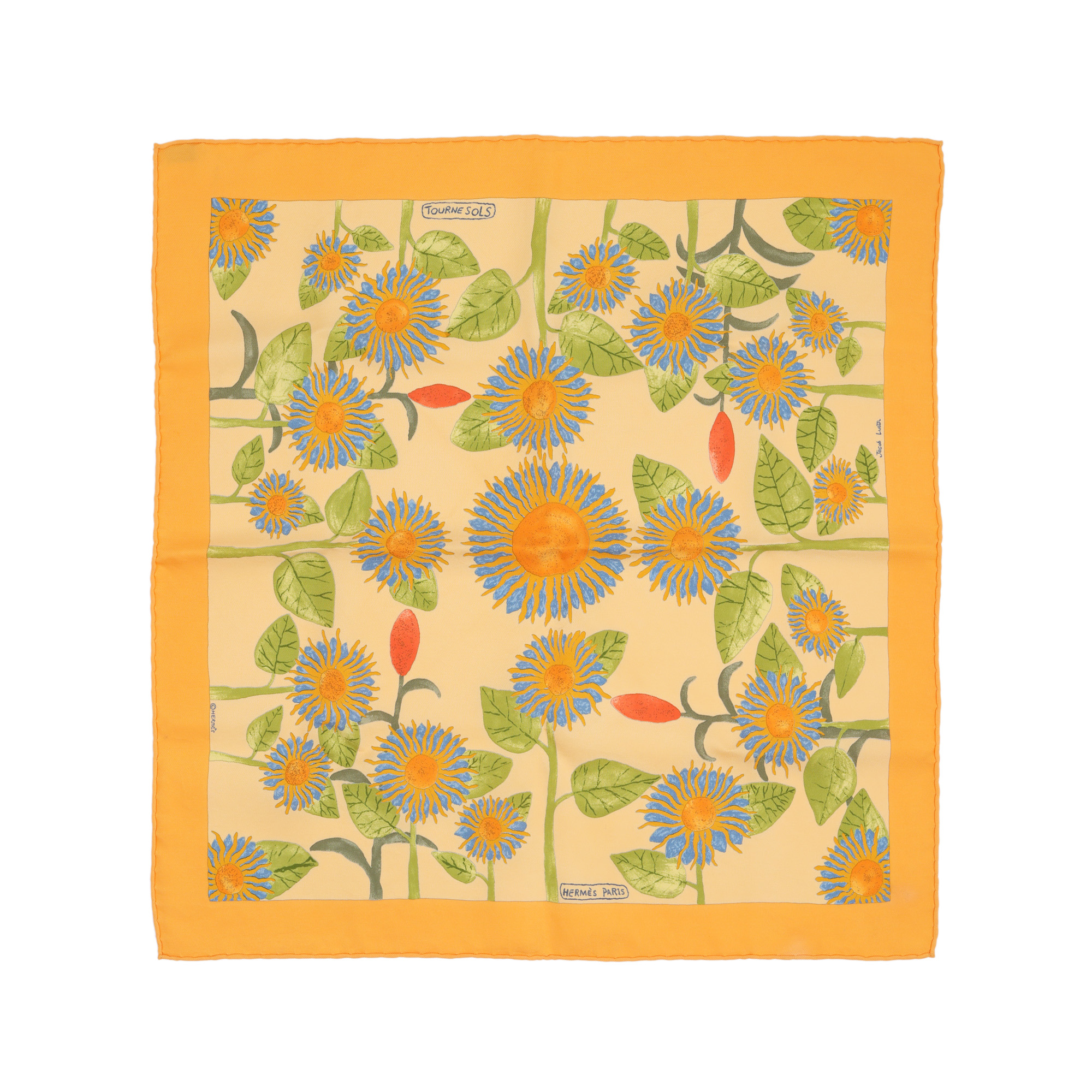 38. Eșarfă Hermès, "Tourne Sols", din mătase naturală, design Jacob Lueth, însoțită de cutia originală