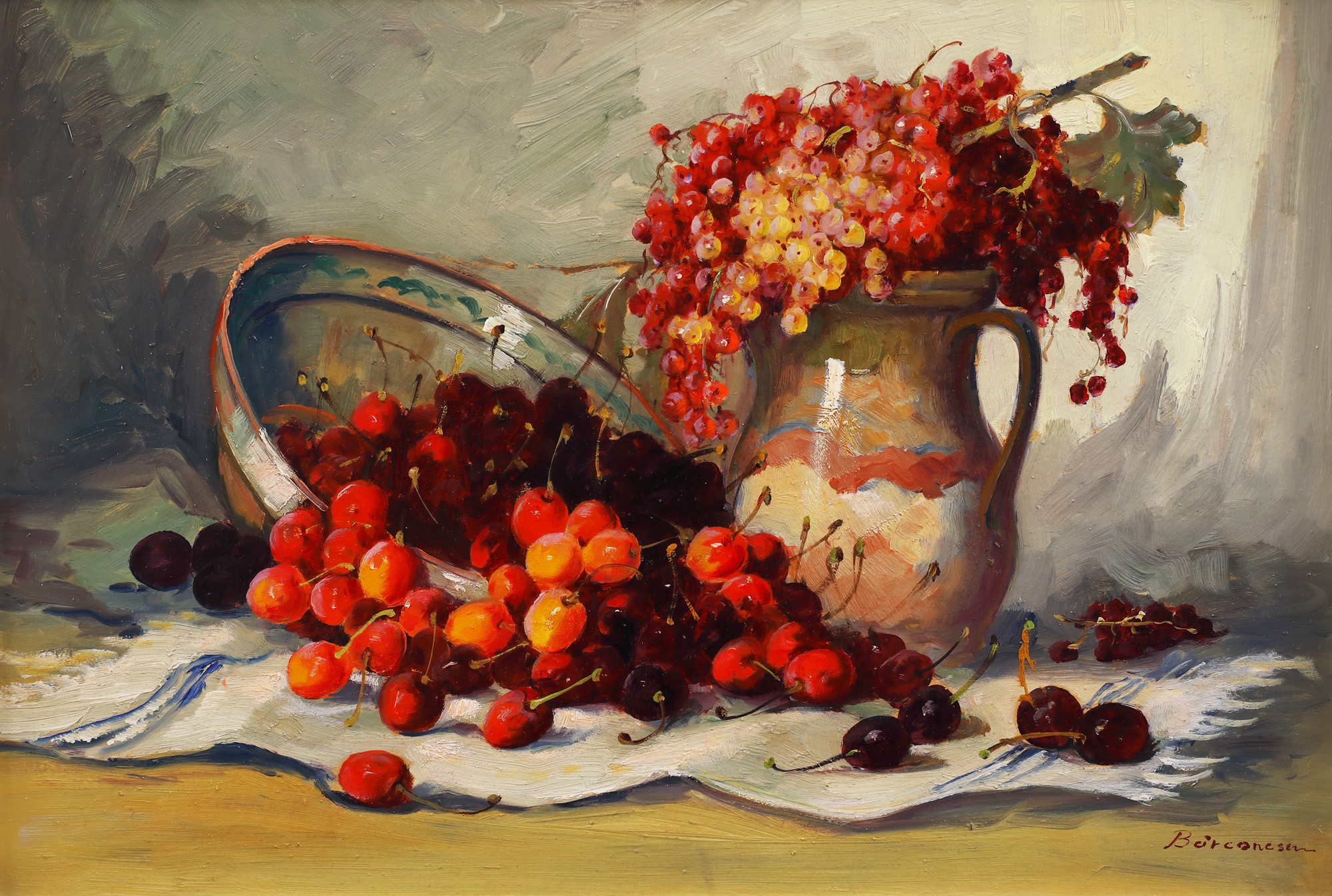 68. Natură statică cu cireșe și coacăze