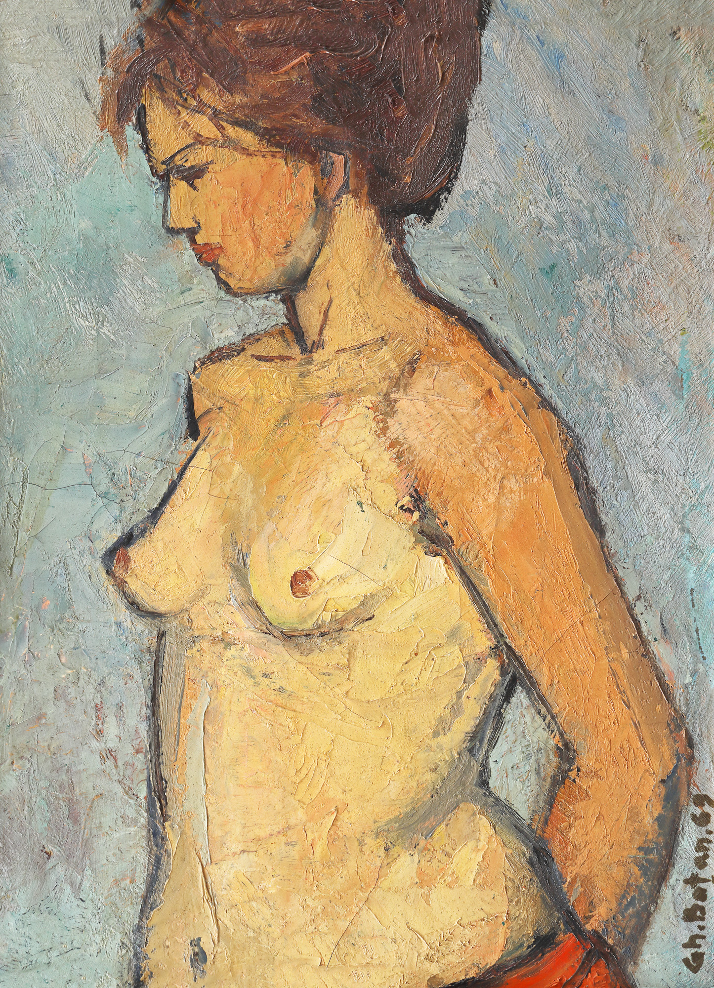 semnat și datat lateral dreapta, cu brun, "Gh. Boțan, (19)69"