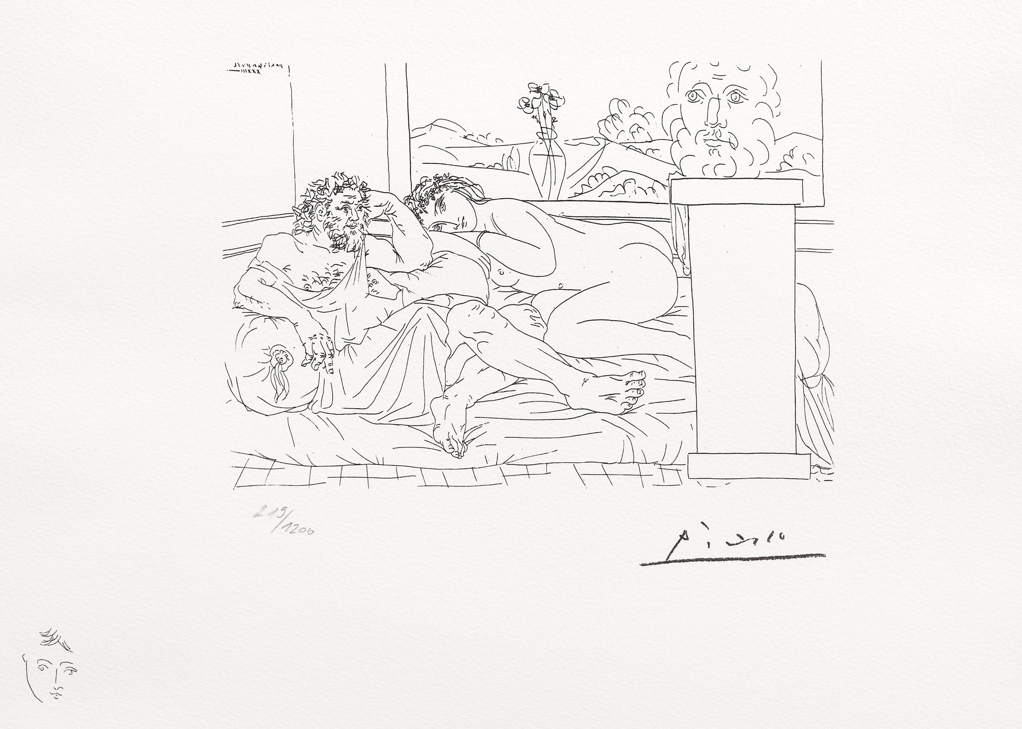 semnat dreapta jos, în placă, "Picasso"; numerotat stânga jos, în creion, "219/1200"