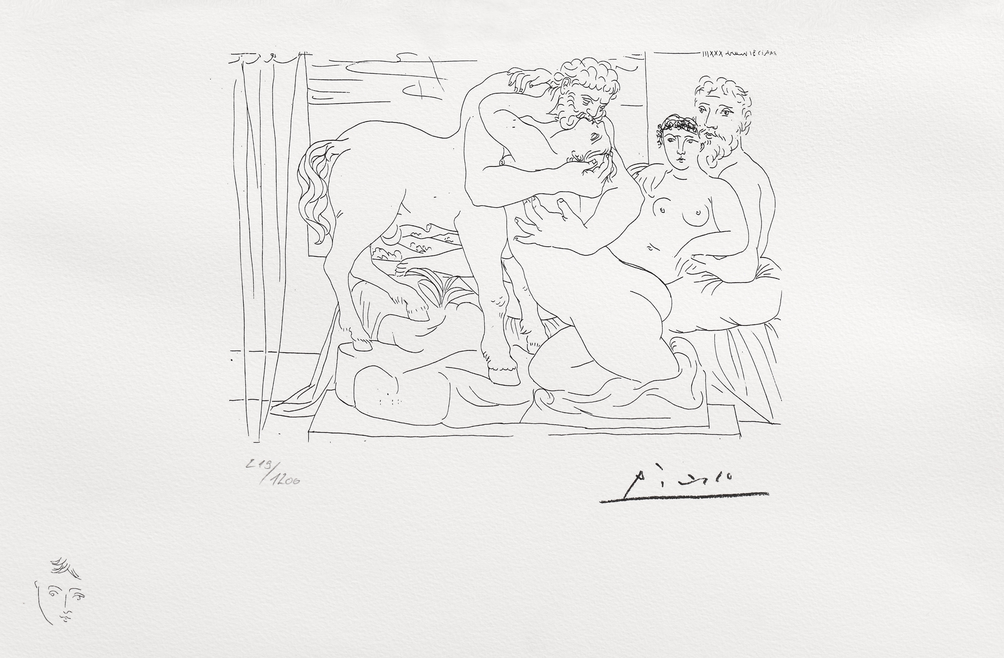 semnat dreapta jos, în placă, ”Picasso”; numerotat stânga jos, în creion, "219/1200"
