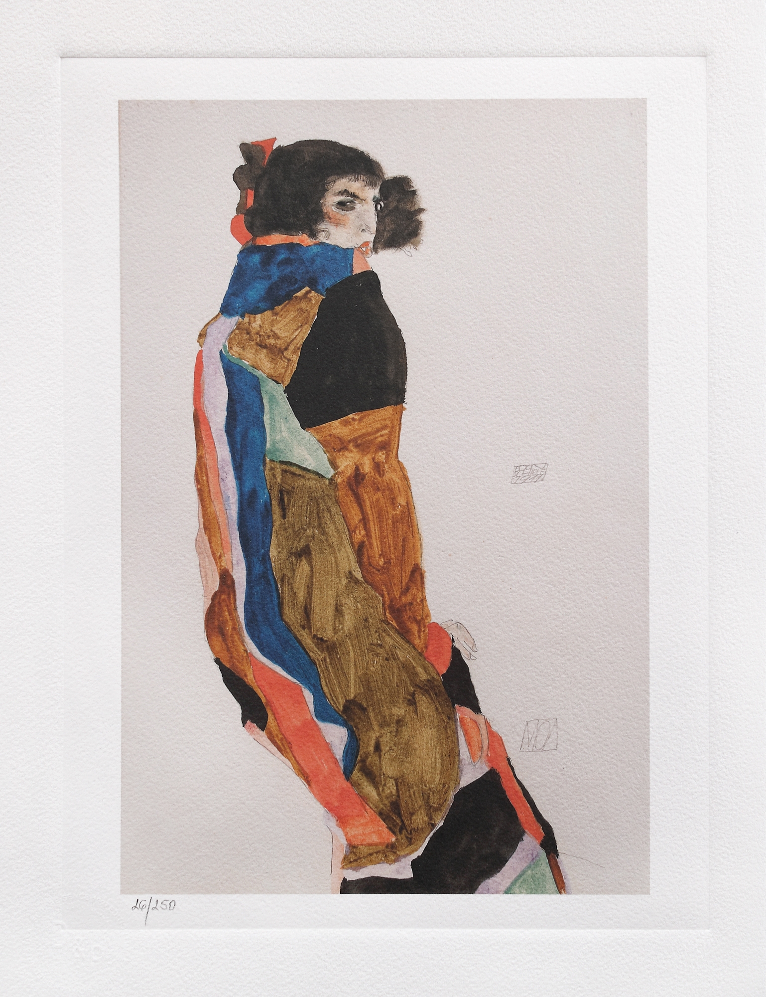 semnat și datat lateral dreapta, în placă, ”EGON SCHIELE, 1911”; intitulat lateral dreapta, în placă, ”MOA”; numerotat stânga jos, în creion, ”26/250”; stânga jos, ștampila editurii, ”D&P CERTIFIED ARTS USA EUROPE SINCE 1997”