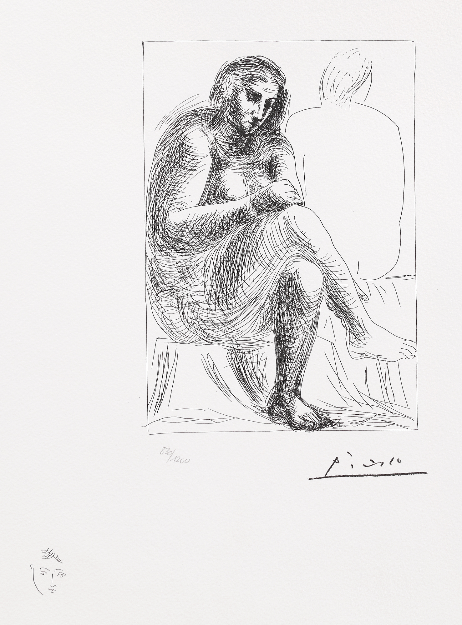 semnat dreapta jos, sub cadru, ”Picasso”; numerotat stânga jos, sub cadru, în creion, ”830/1200”
