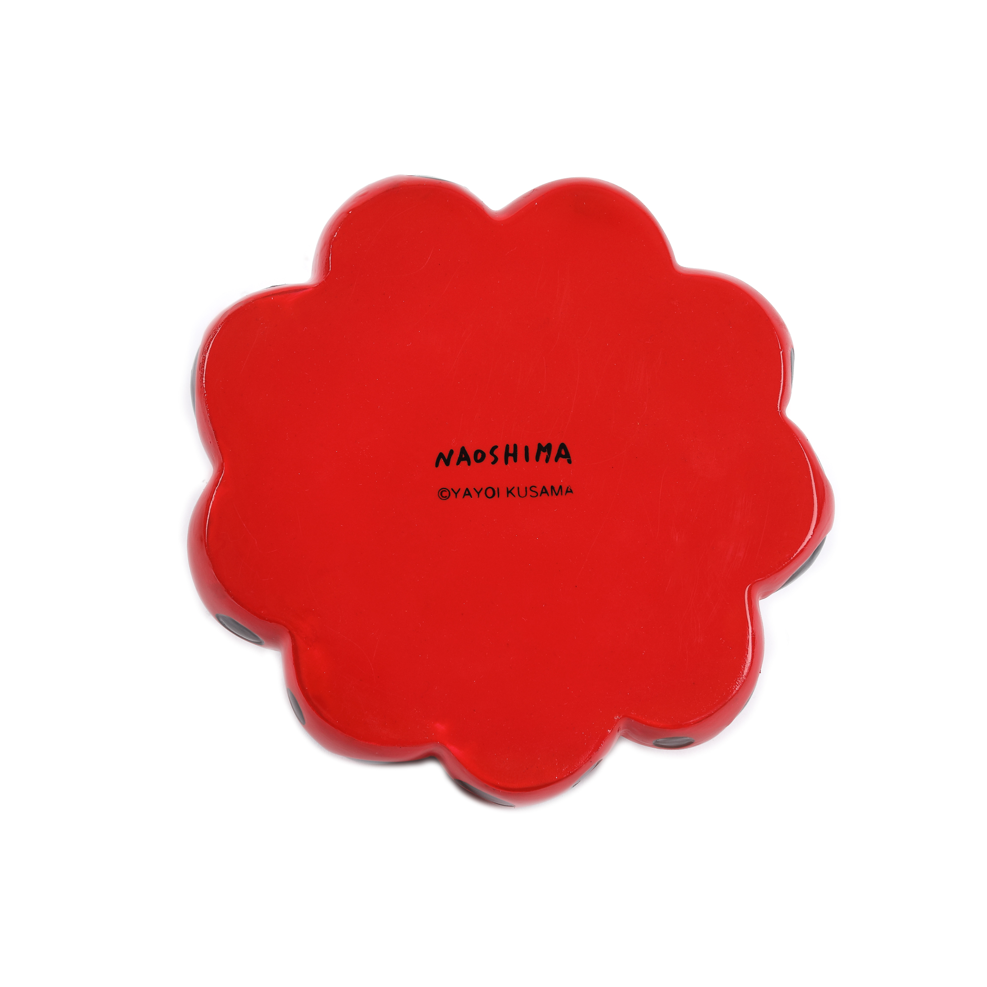 notat la bază, cu negru, "Yayoi Kusama, Naoshima"