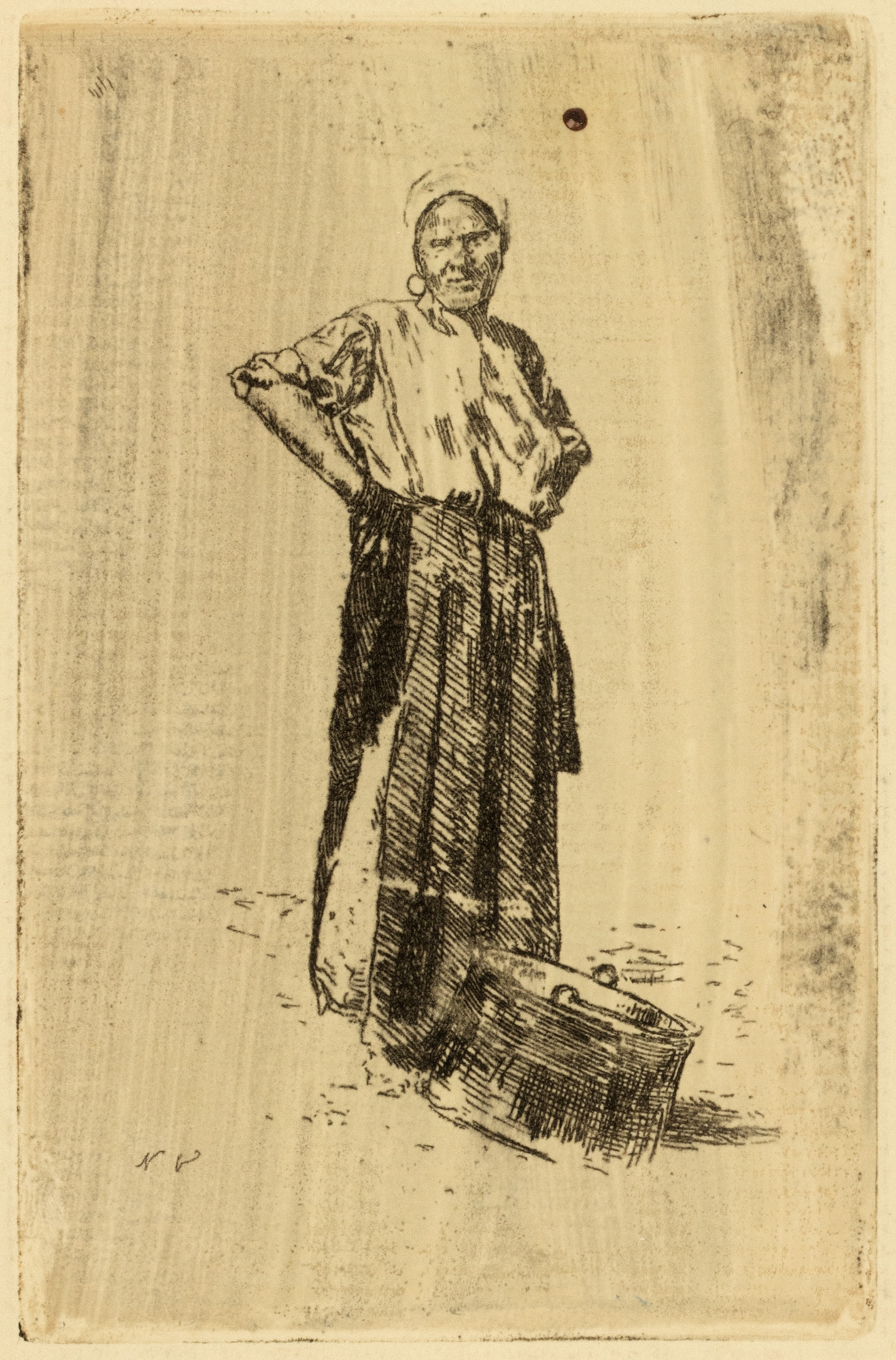 semnat stânga jos, în placă, "N.V."