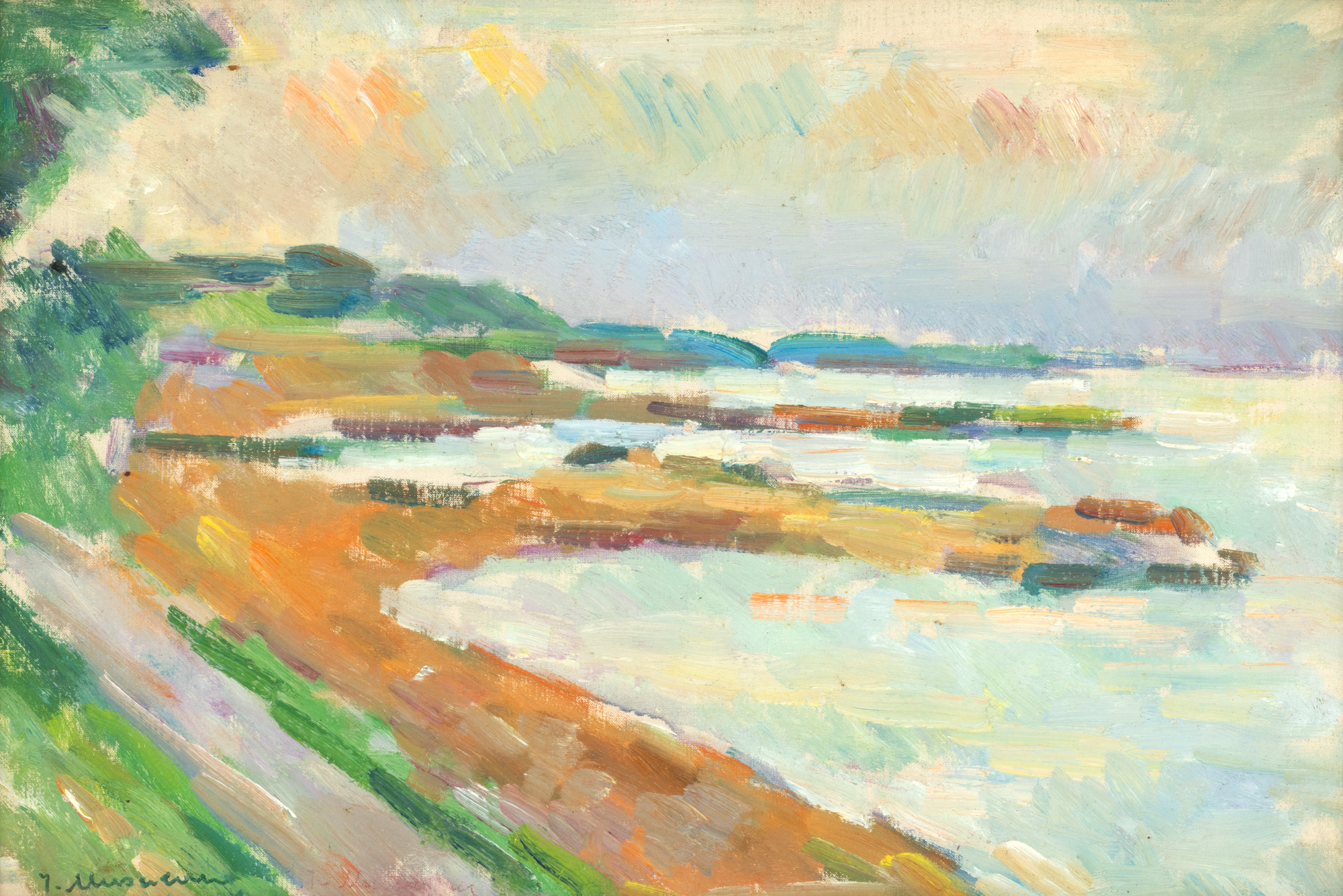semnat stânga jos, cu verde și roșu, "I. Musceleanu"