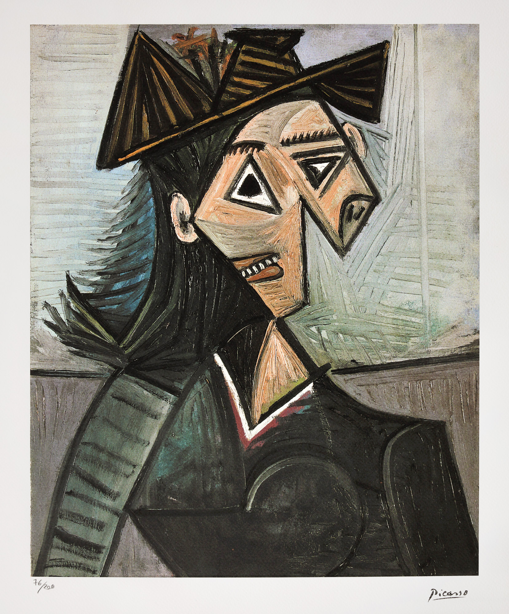 semnat dreapta jos, sub cadru, "Picasso"; numerotat stânga jos, sub cadru, în creion, "76/200"