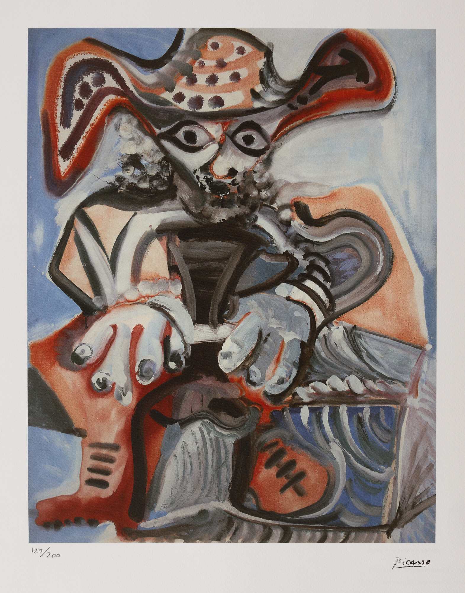 semnat dreapta jos, sub cadru, ”Picasso”; numerotat stânga jos, sub cadru, în creion ”120/200”