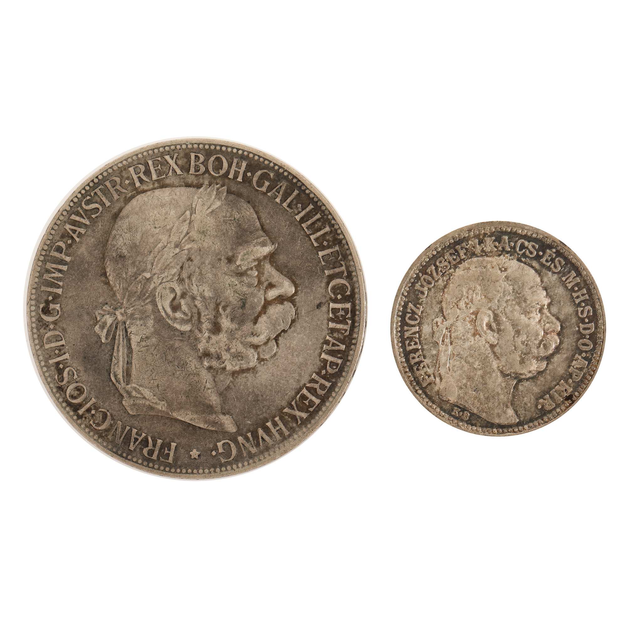 56. Lot format din două monede, 5 Coroane 1900, 1 Coroană 1914, Austro-Ungaria, argint