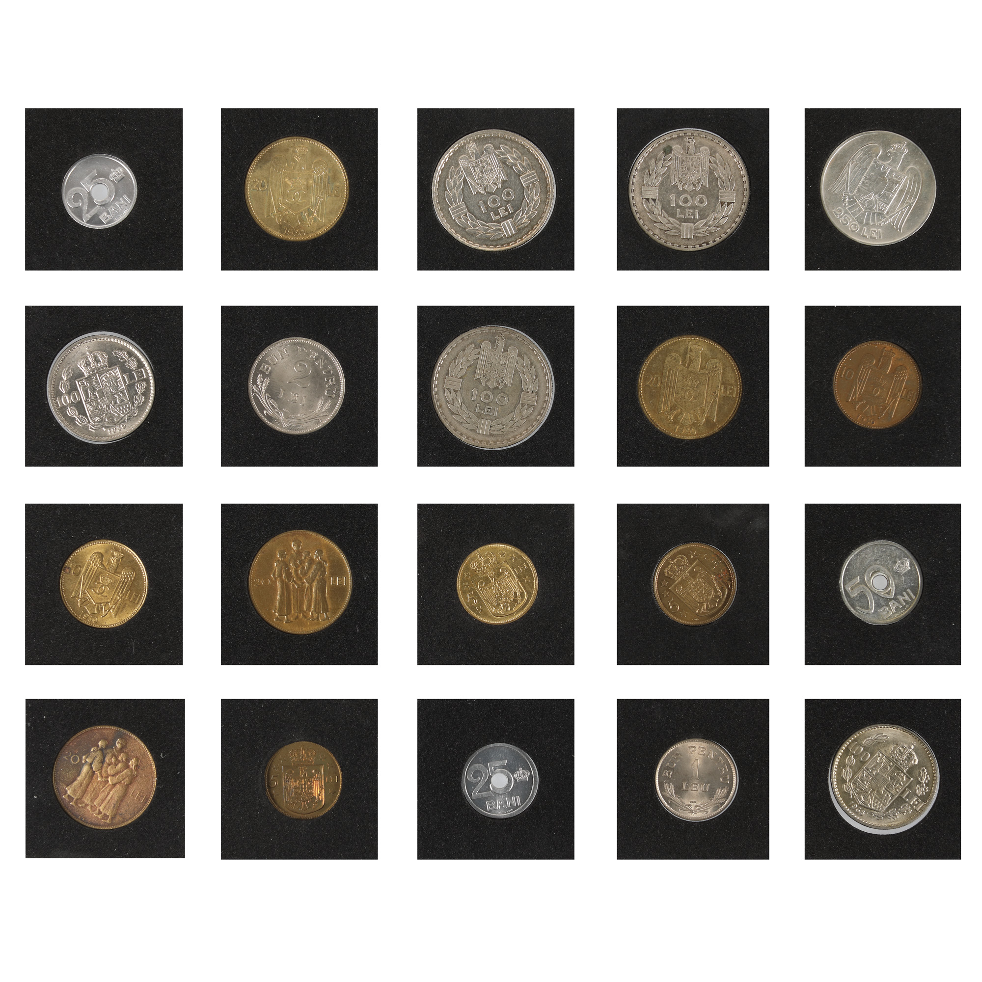 2 x 25 bani 1921, 2 x 20 Lei 1930 Carol II, 3 x 100 Lei 1932, 250 Lei 1933, 100 Lei 1936, 2 Lei 1924, 2 x 10 Lei 1930, 2 x 20 Lei 1930 Mihai I, 2 x 5 Lei 1930, 50 Bani 1921, 5 Lei 1930, 1 Leu 1924, 100 Lei 1933
