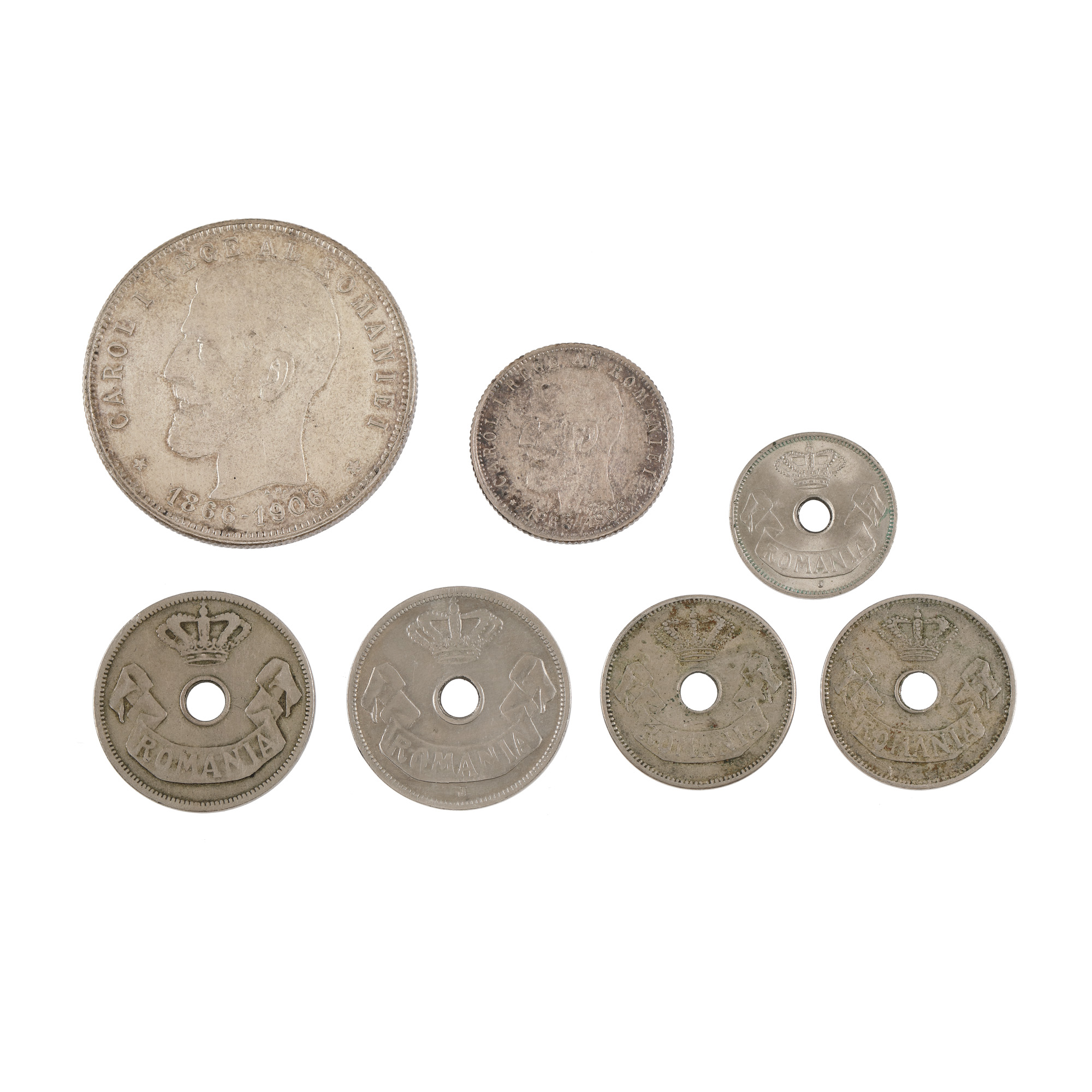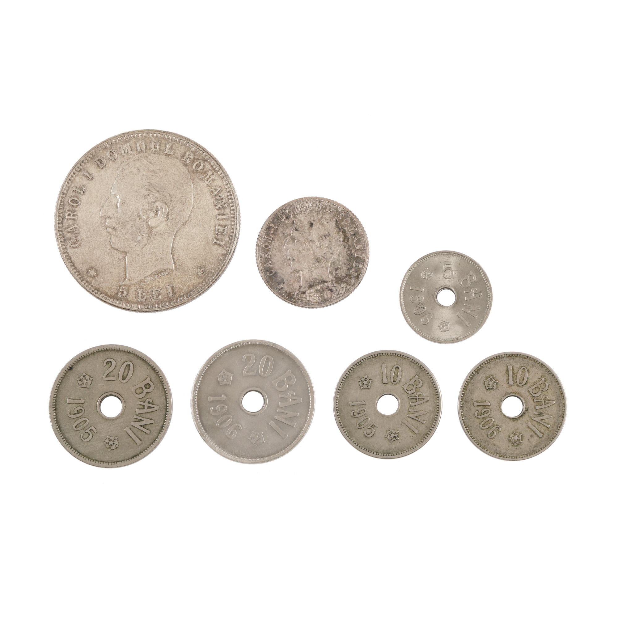 73. Lot format din șapte monede, 10 Bani, 20 Bani 1905, 5 Bani, 10 Bani, 20 Bani, 1 Leu, 5 Lei 1906