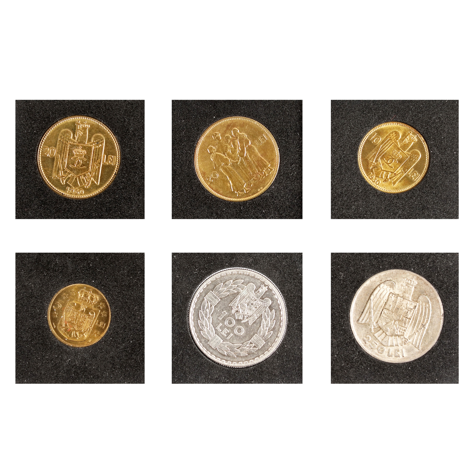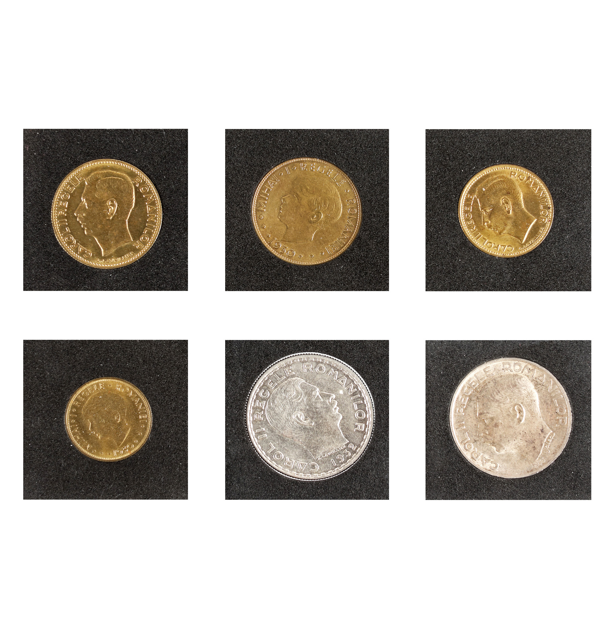 77. Lot format din șase monede, 5 Lei, 10 Lei, 20 Lei Mihai, 20 Lei Carol II 1930, 100 Lei 1932, 250 Lei 1935