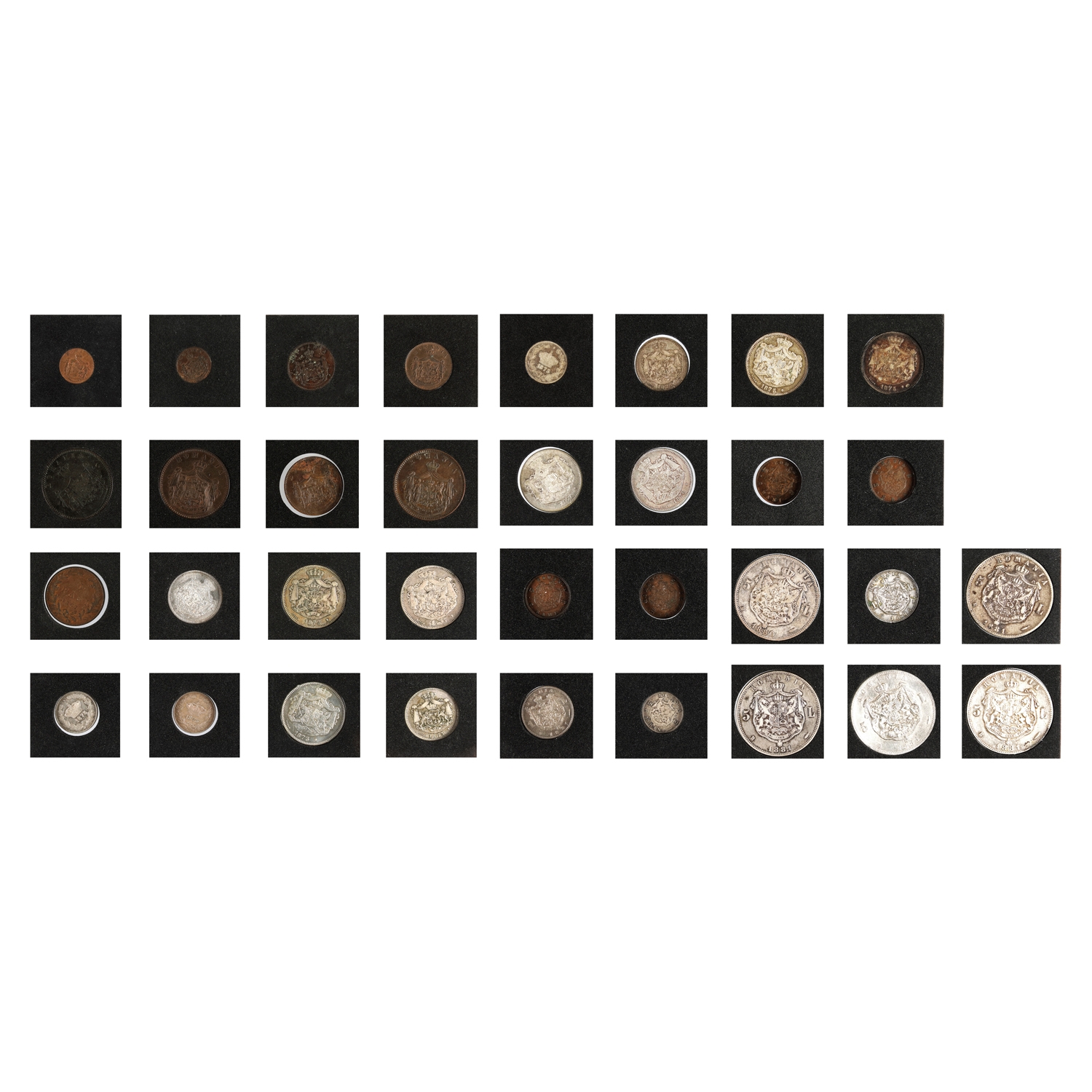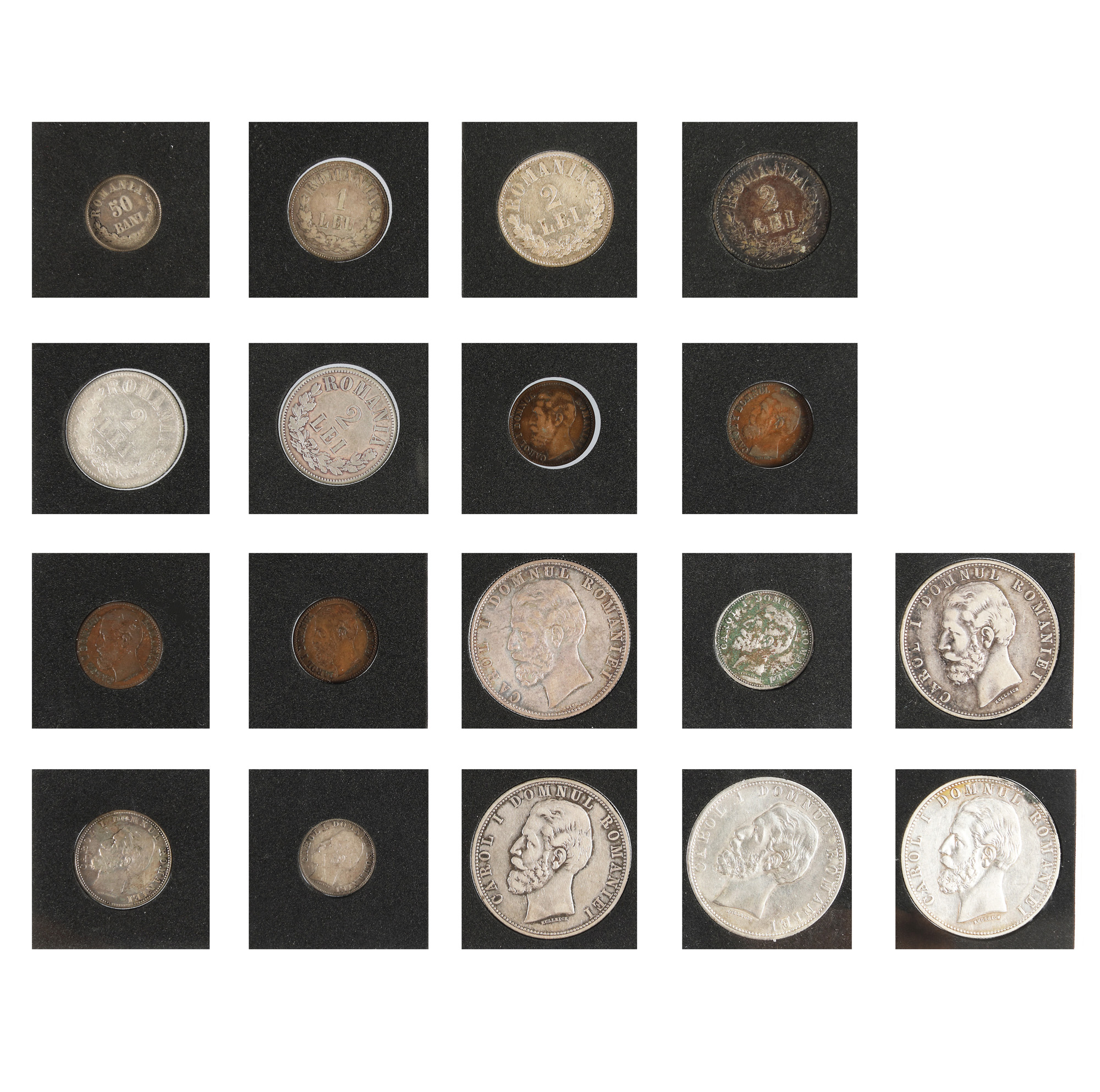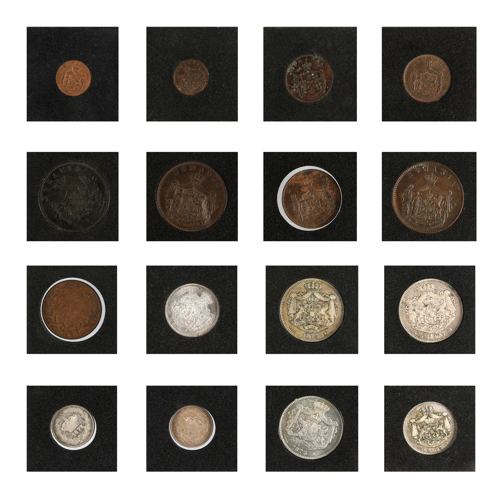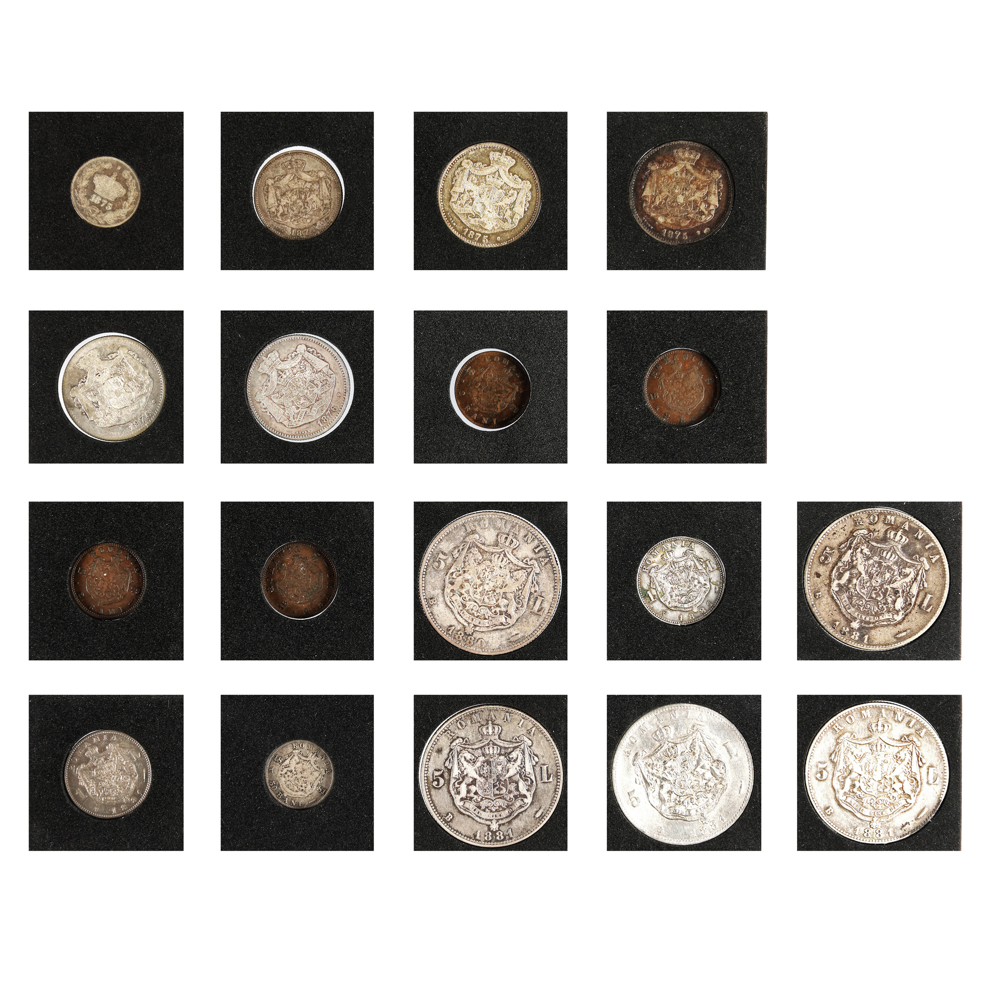 4 x 5 Lei 1881, 2 x 1 Ban 1867, 2 x 2 Bani 1867, 2 x 5 Bani 1867, 3 x 10 Bani 1867, 2 x 1 Leu 1873, 3 x 2 Lei 1873, 50 Bani 1873, 2 x 50 Bani 1875, 1 Leu 1875, 2 x 2 Lei 1875, 2 x 2 Lei 1876, 3 x 2 Bani 1879, 1 x 2 Bani 1880, 2 x 1 Leu 1881, 1 x 50 Bani 1881
