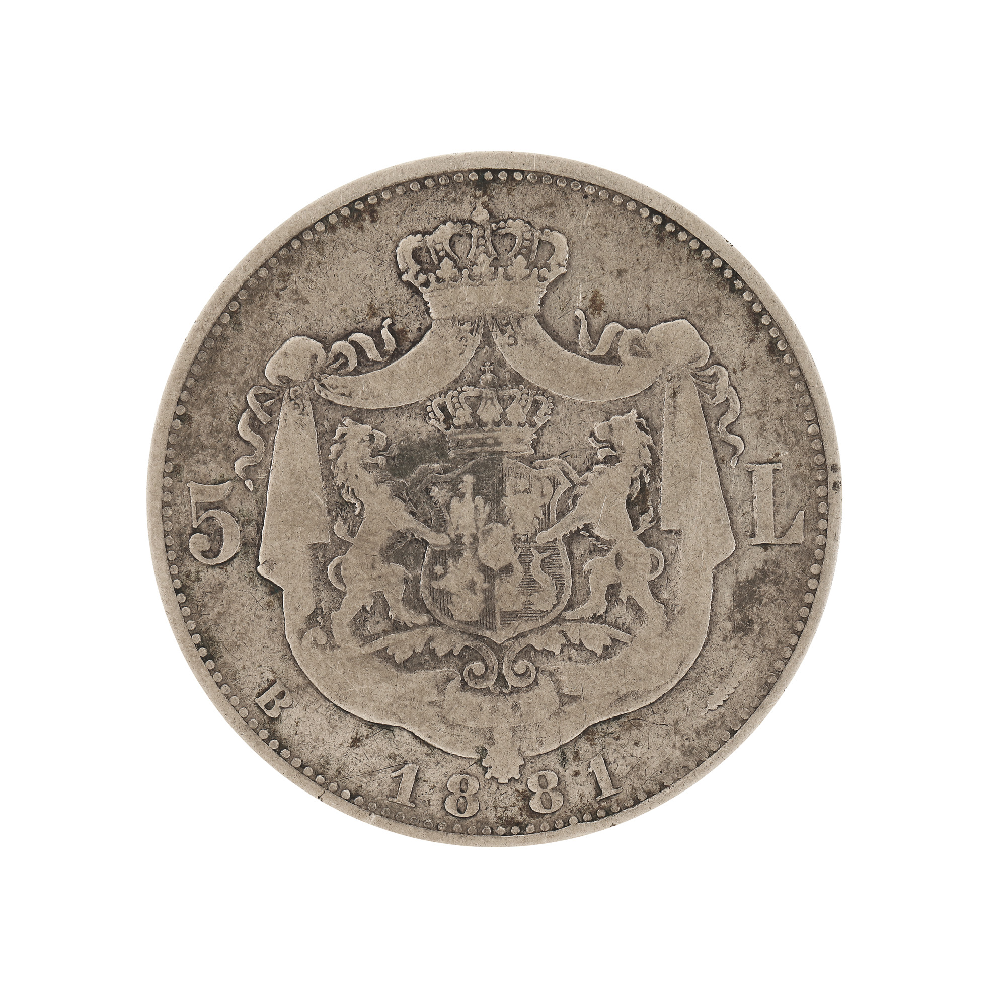 111. Moneda 5 Lei 1881 (scut deviat), argint