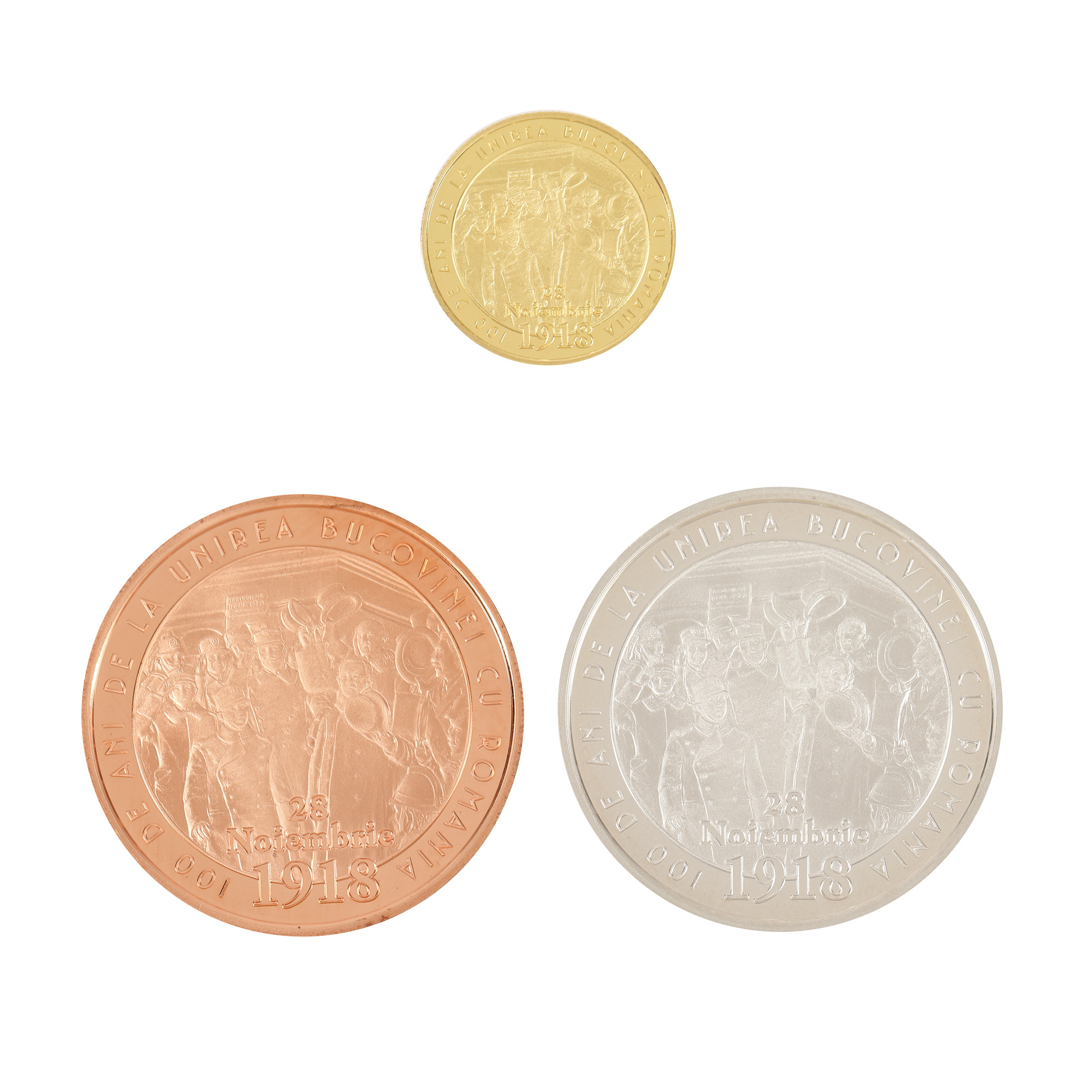 107. Set de trei monede comemorative BNR, 100 de la Unirea Bucovinei cu România, 2018