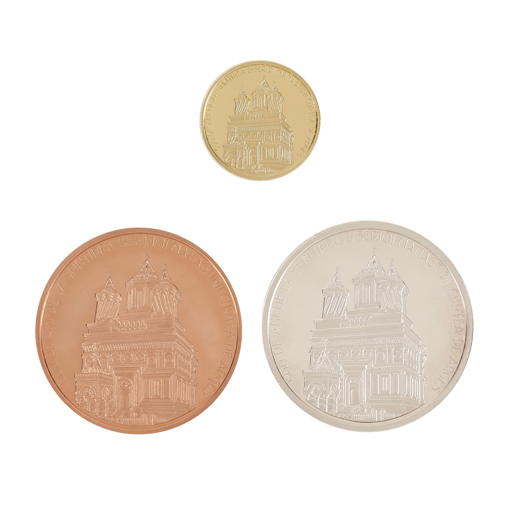 90. Set de trei monede comemorative BNR, 500 de ani de la sfințirea mânăstirii Curtea de Argeș, 2017