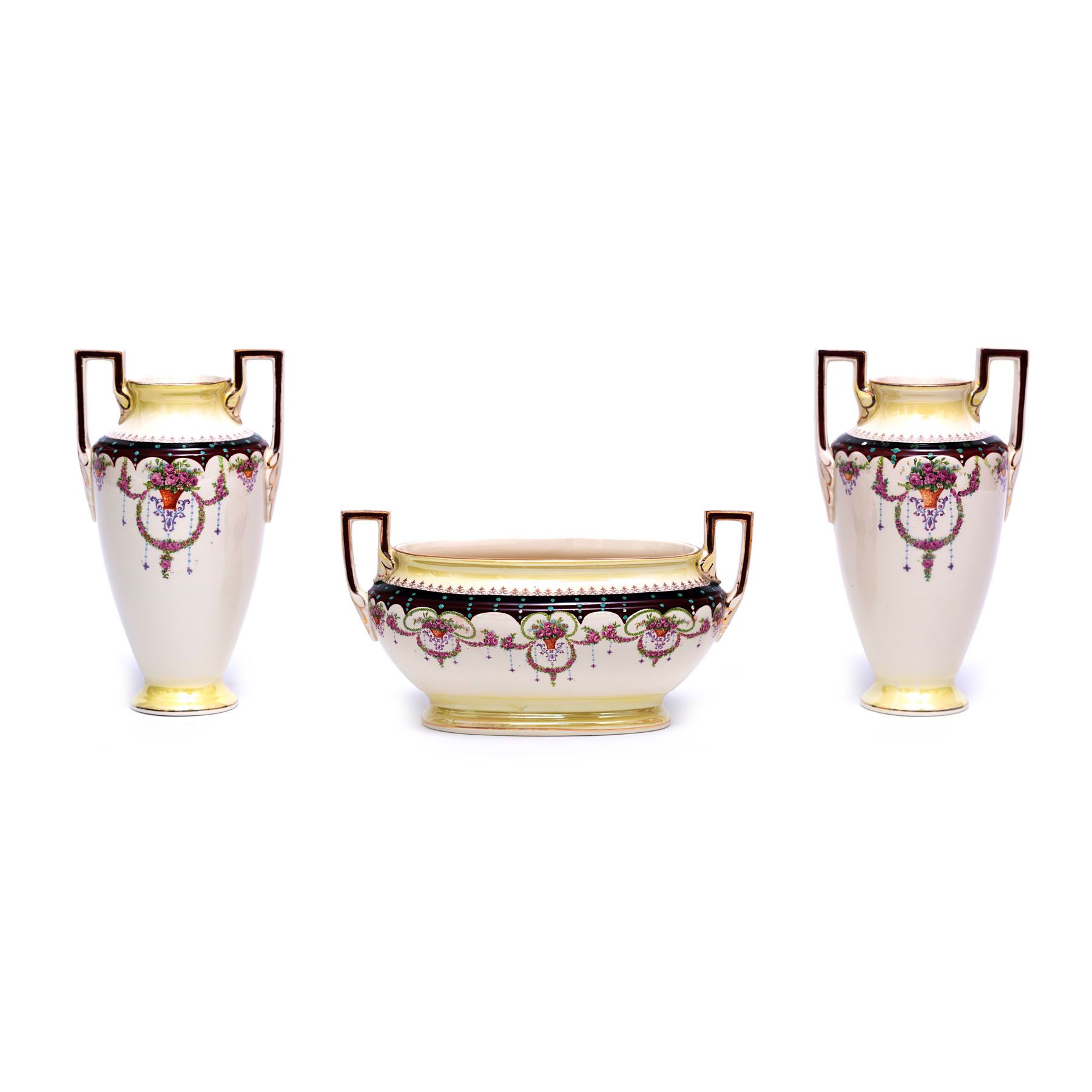 147. Jardinieră și pereche de vase în manieră Louis XVI, din porțelan, sec. XIX