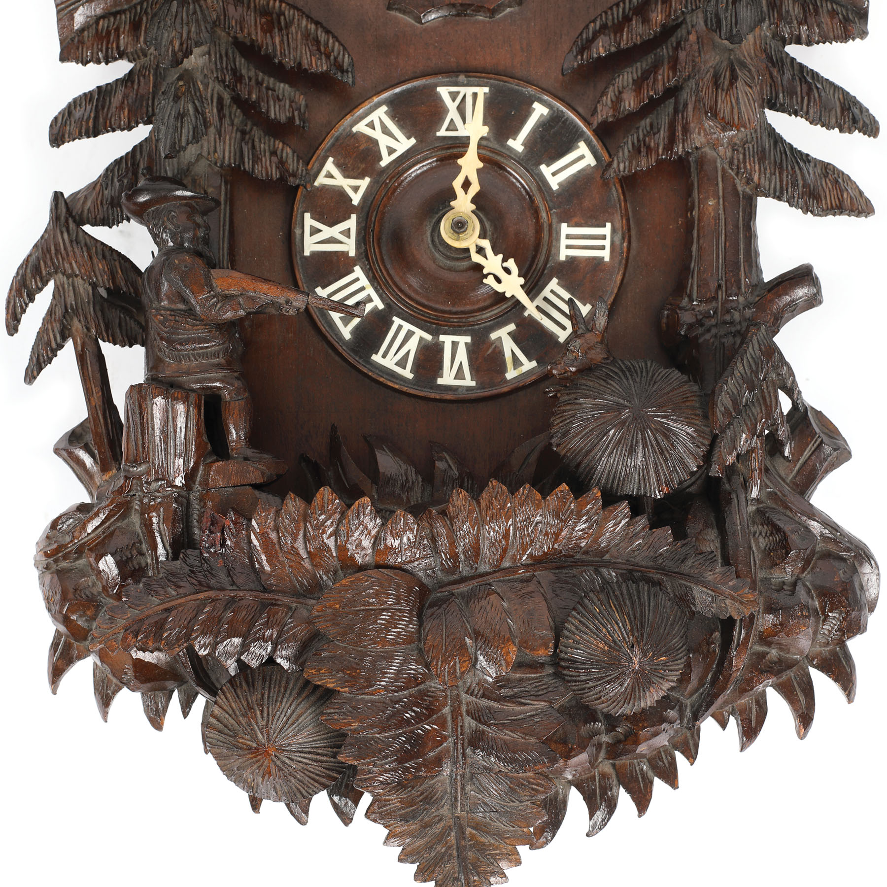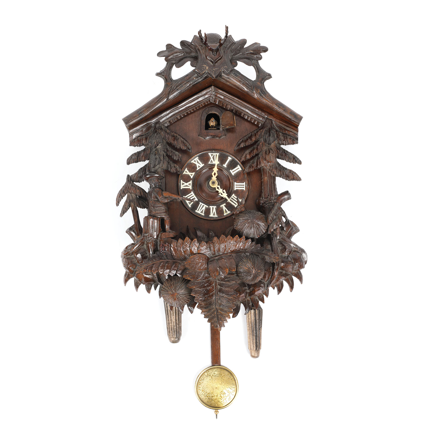 107. "Pădurea neagră" - ceas cu pendul și mecanism Japy Frères, cu decor cinegetic sculptat, sec. XIX