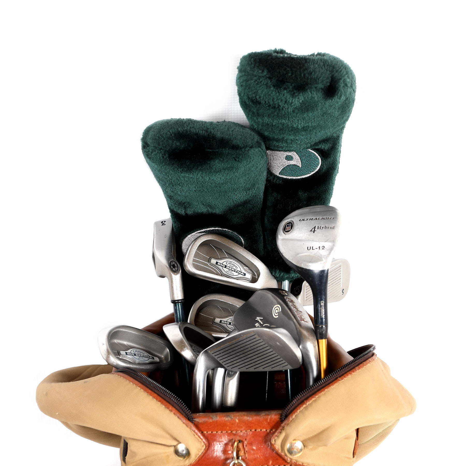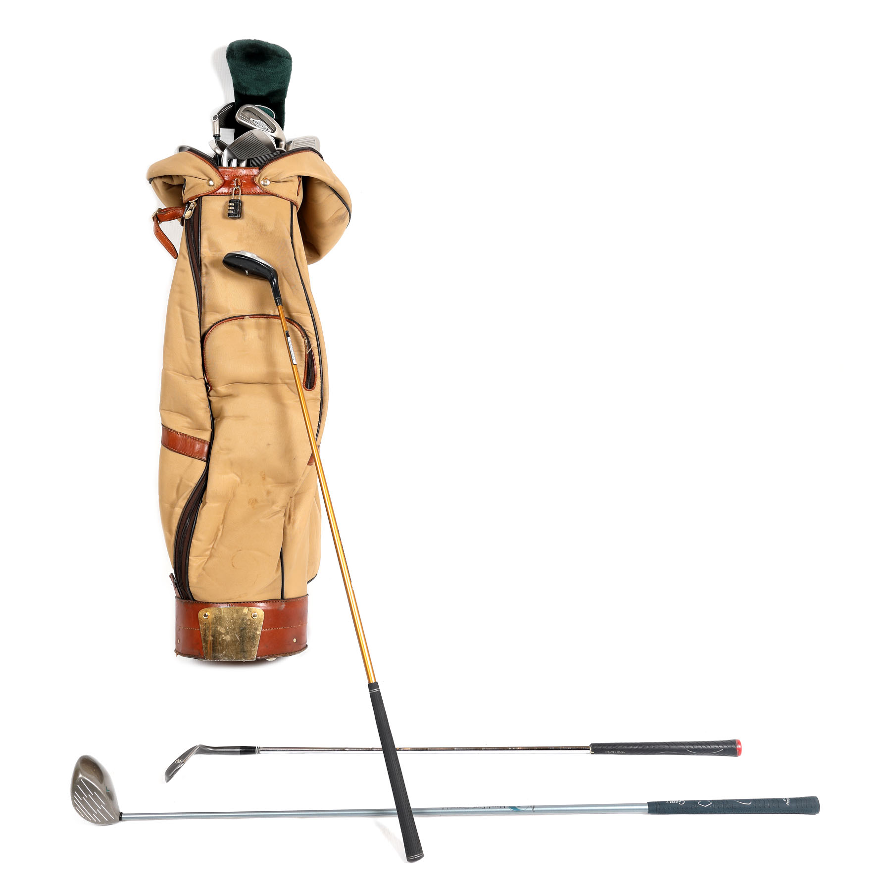 108. Set de crose pentru golf, în husă, jumătatea sec. XX