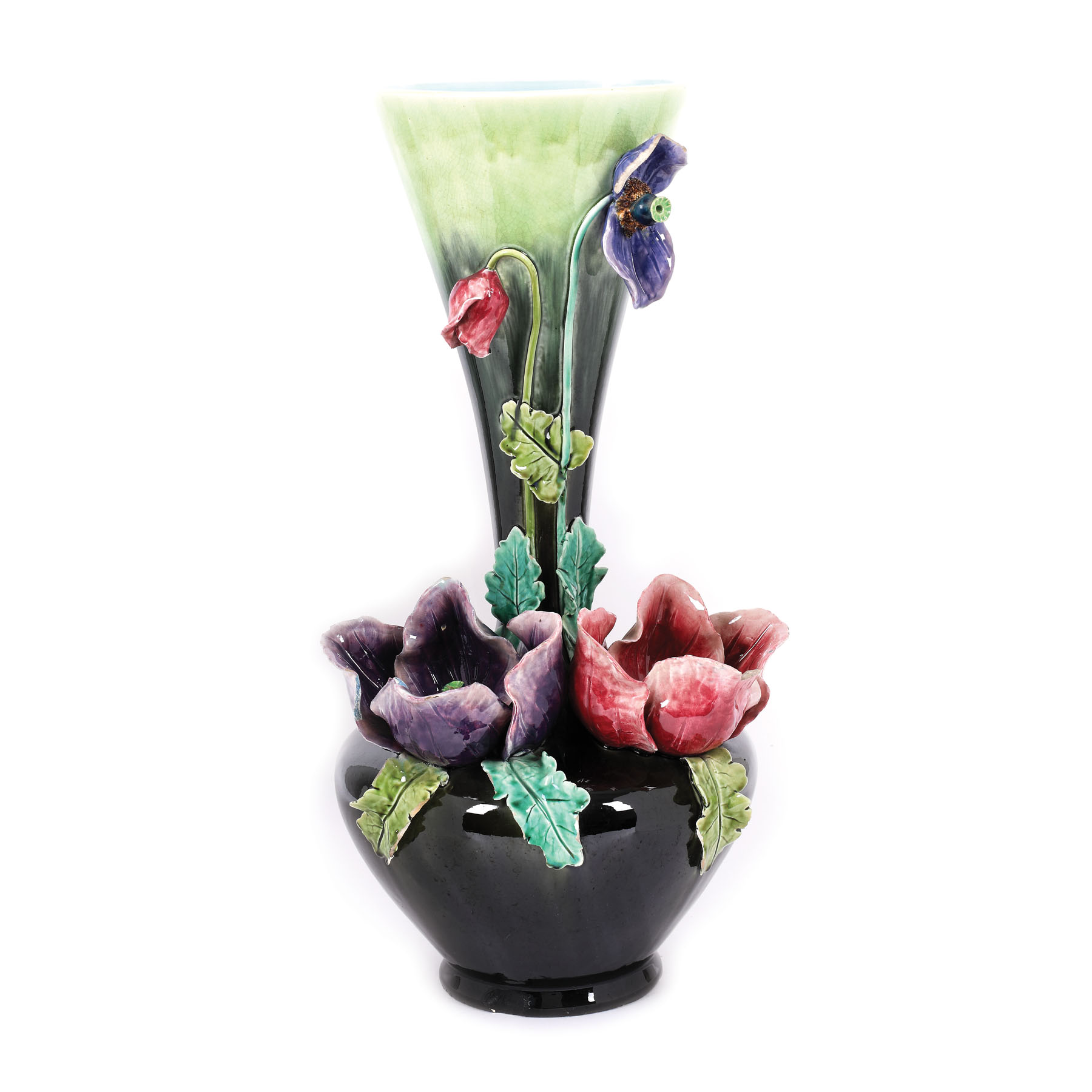 126. Vas în manieră Art Nouveau, din ceramică pictată, decorat cu elemente florale [Sec. XX]