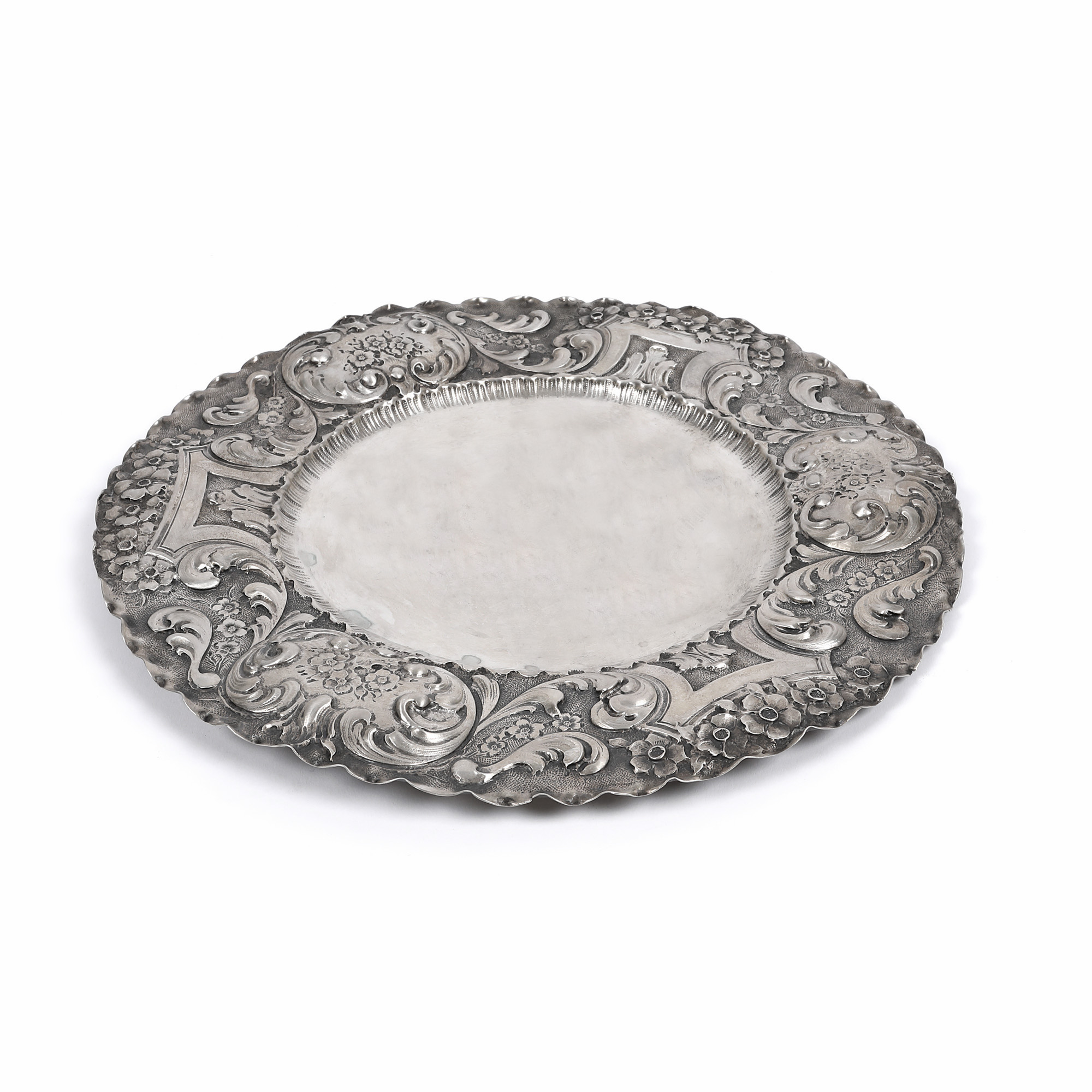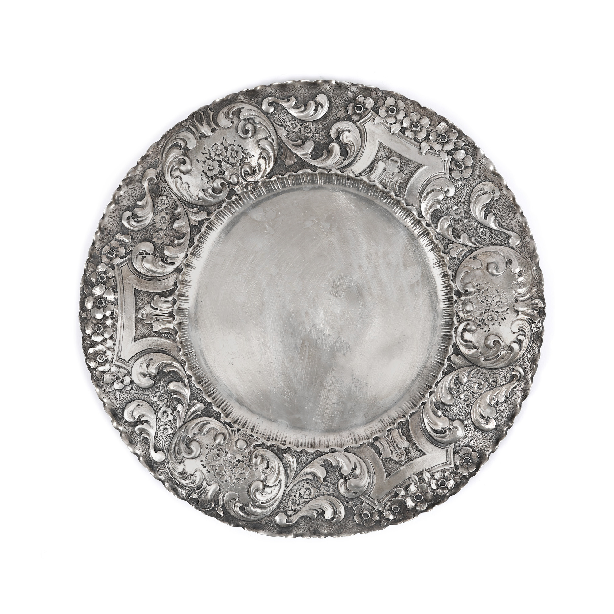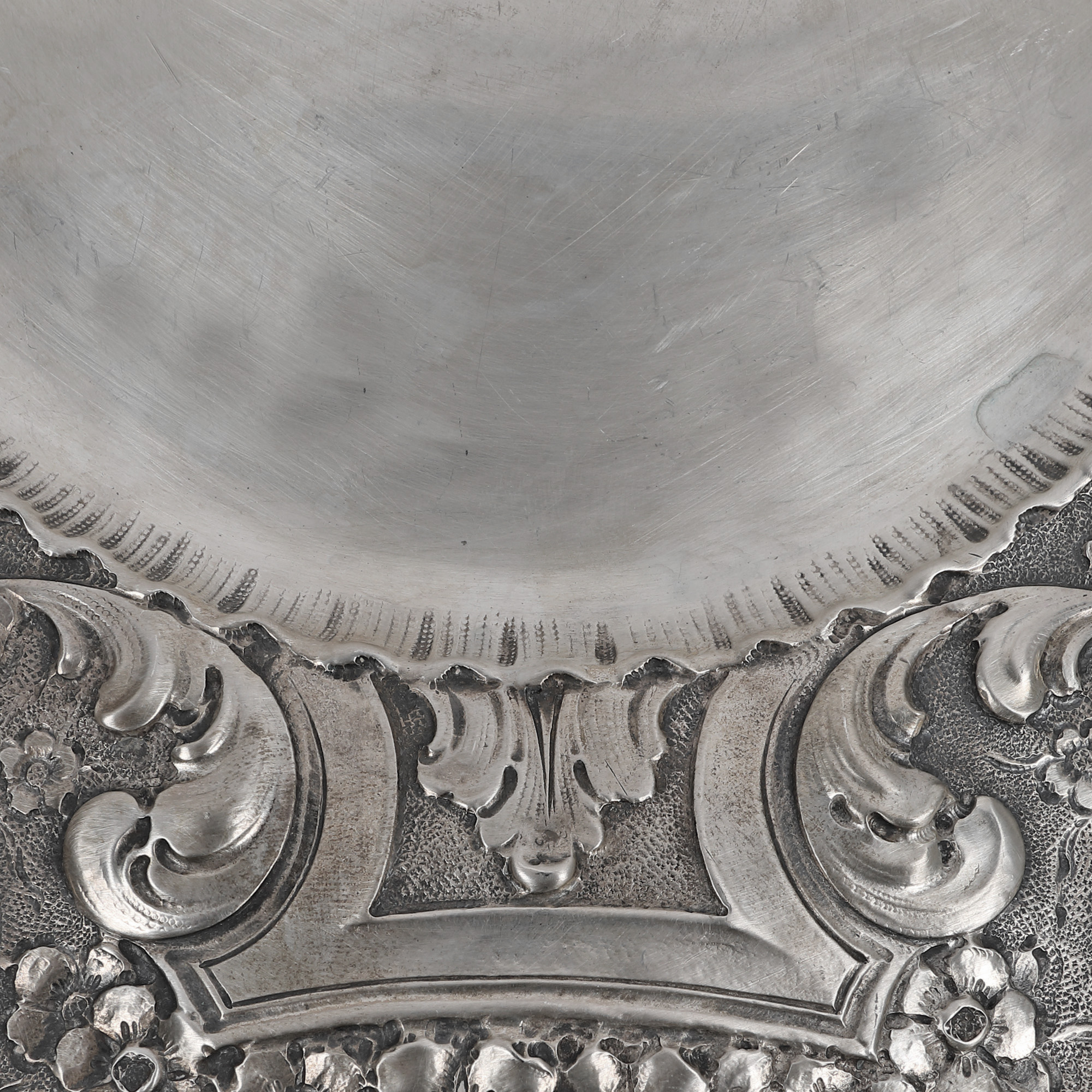 146. Farfurie din argint, decorată cu flori și motive vegetale stilizate, realizată manual, începutul sec. XX