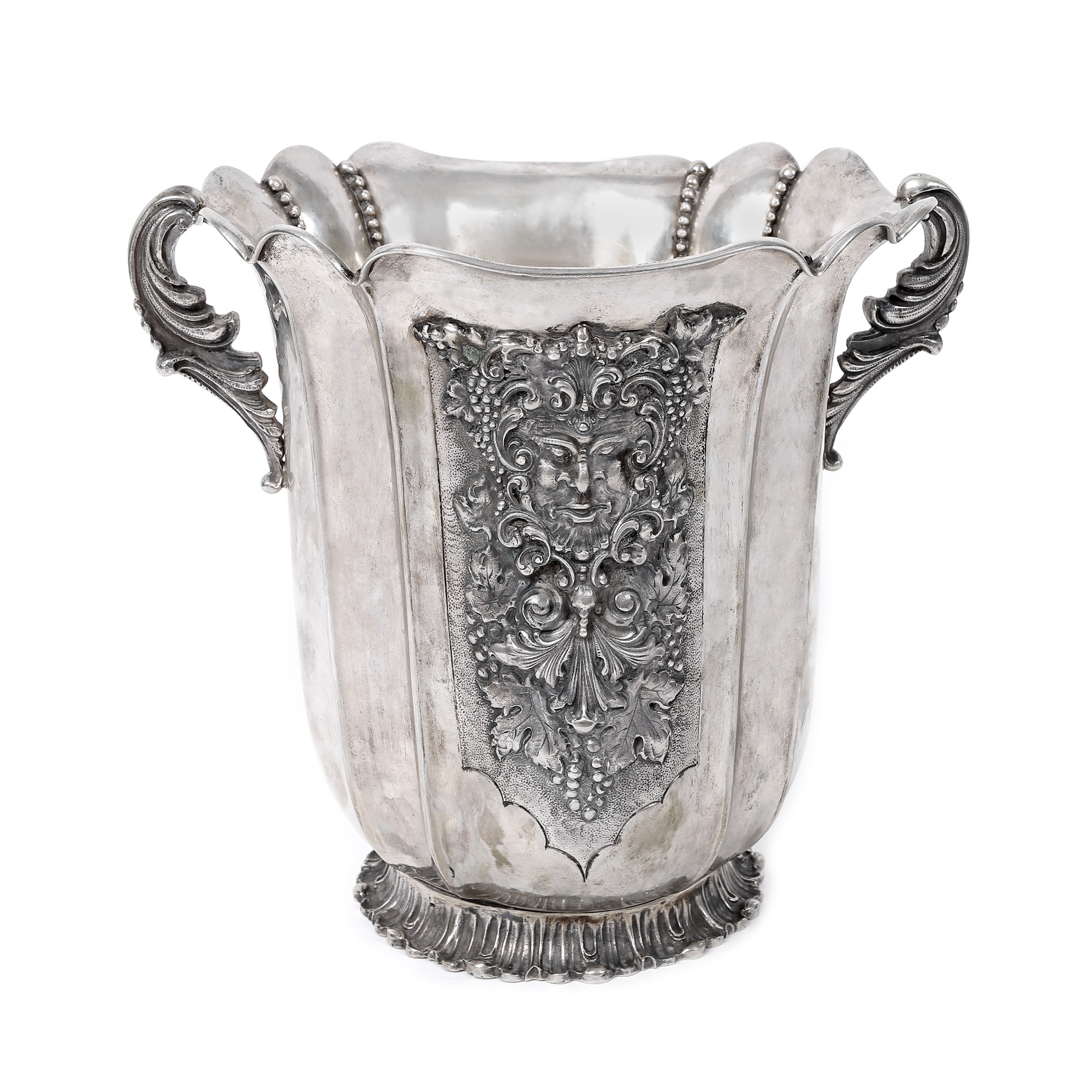 115. Frapieră din argint, decorată cu chipul lui Bacchus, zeul vinului, cca. 1935-1940