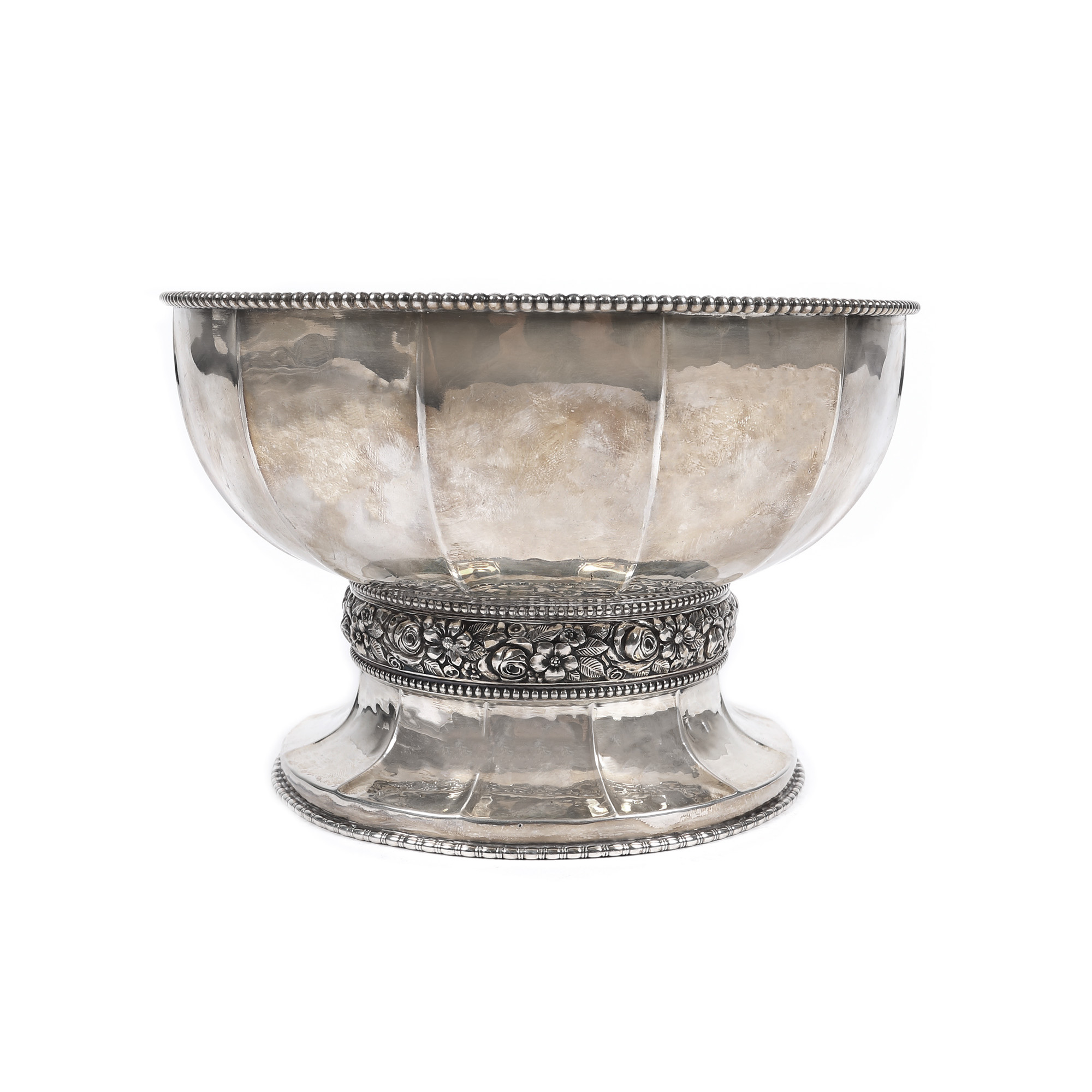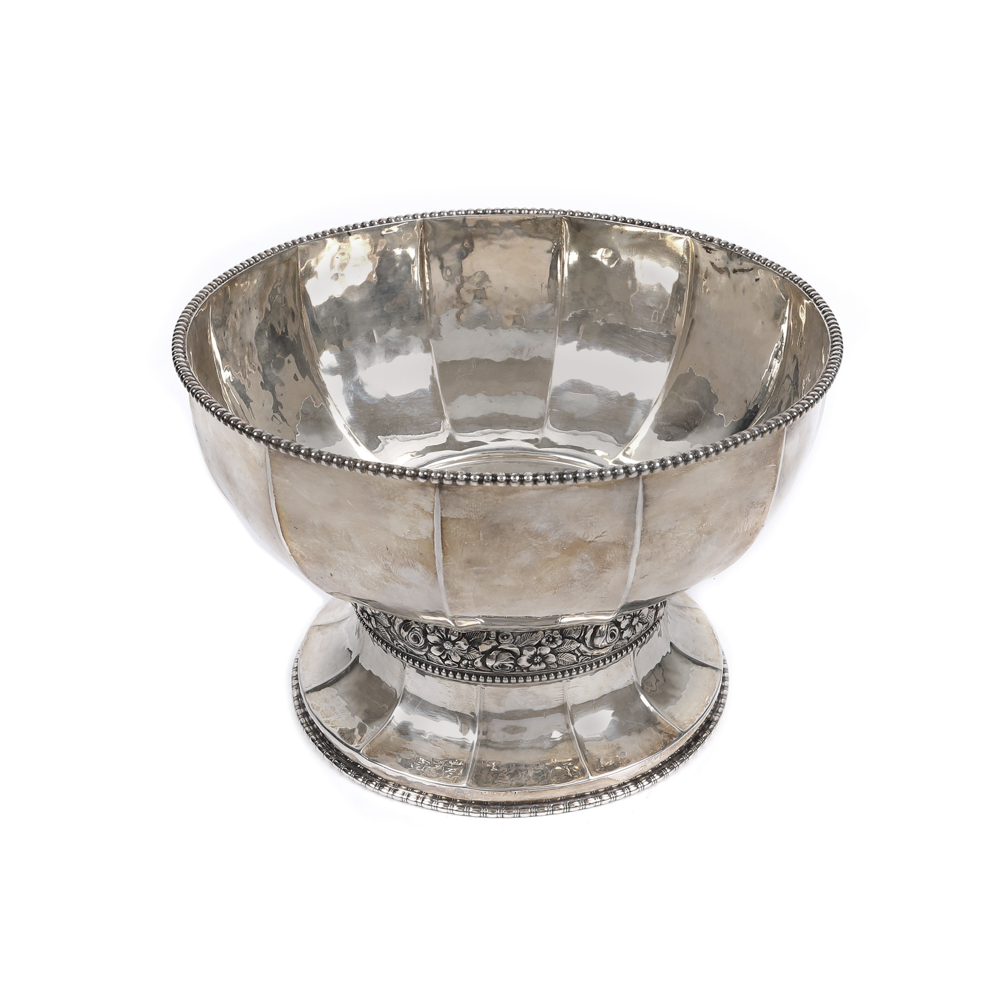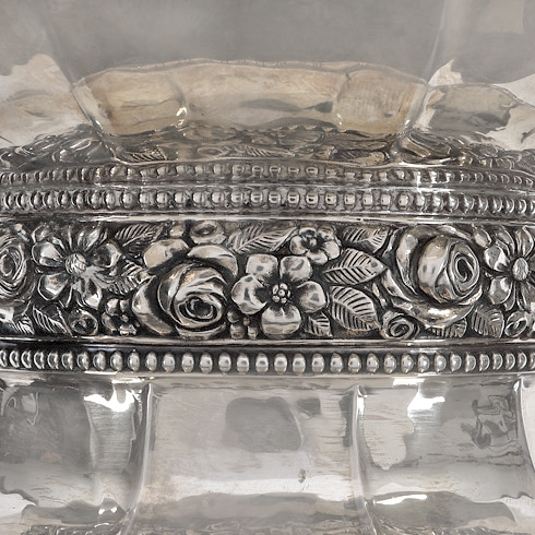 130. Fructieră din argint cu bol din cristal, decorat cu friză florală, 1927