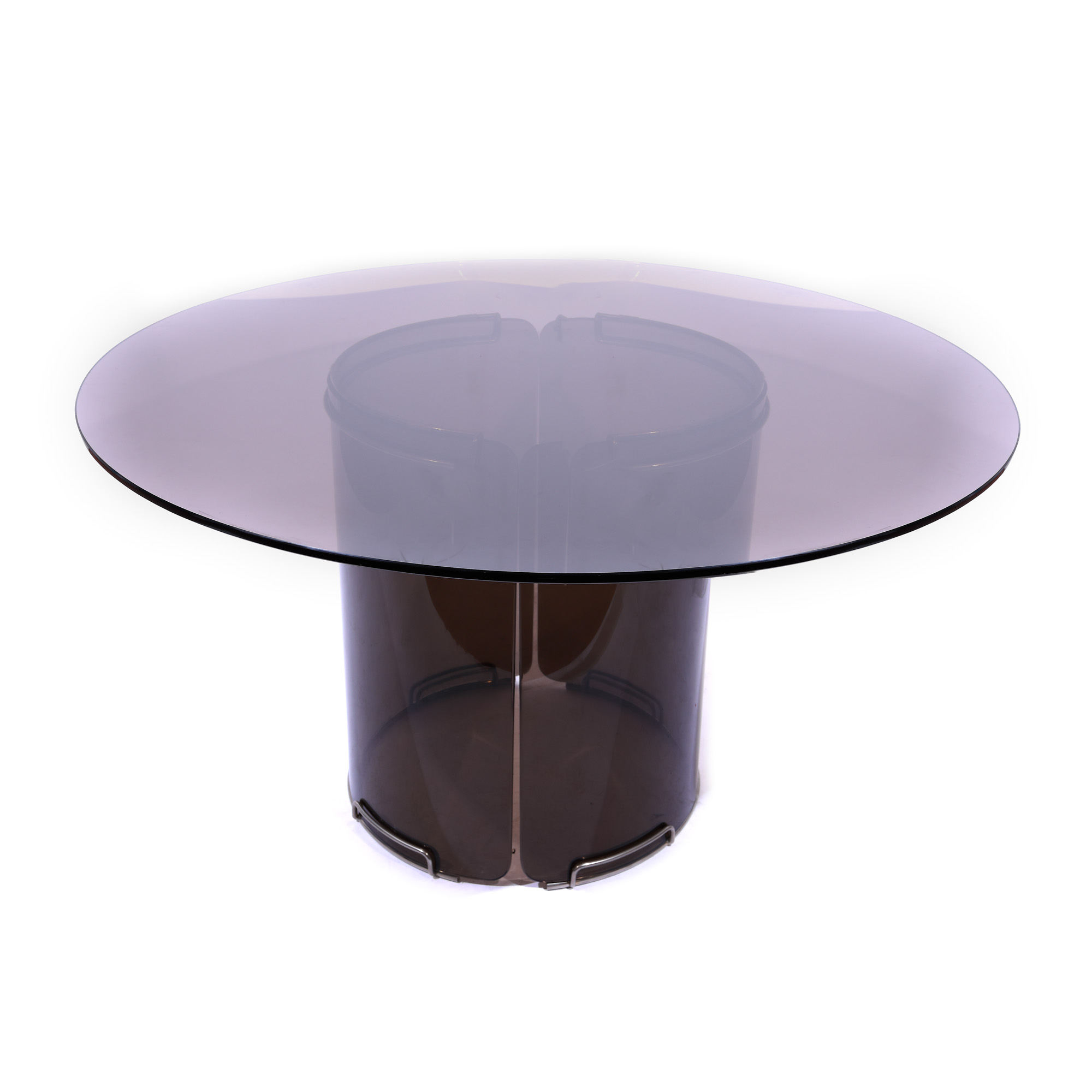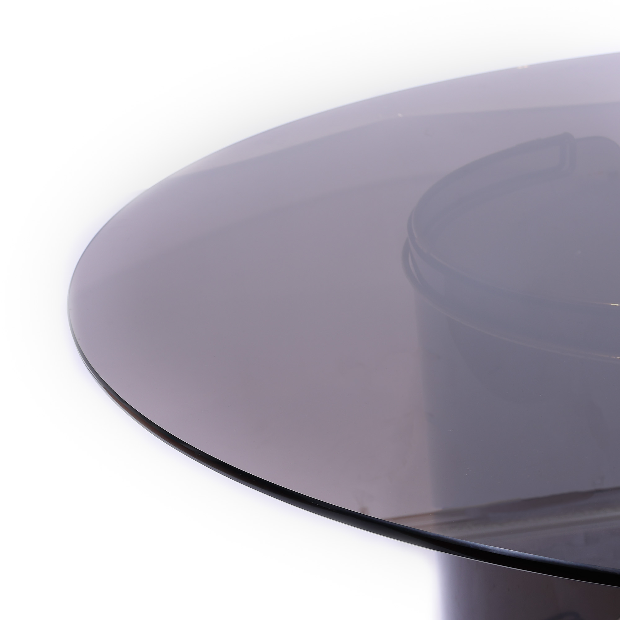 83. Masă circulară din sticlă fumurie, design atribuit Fontana Arte