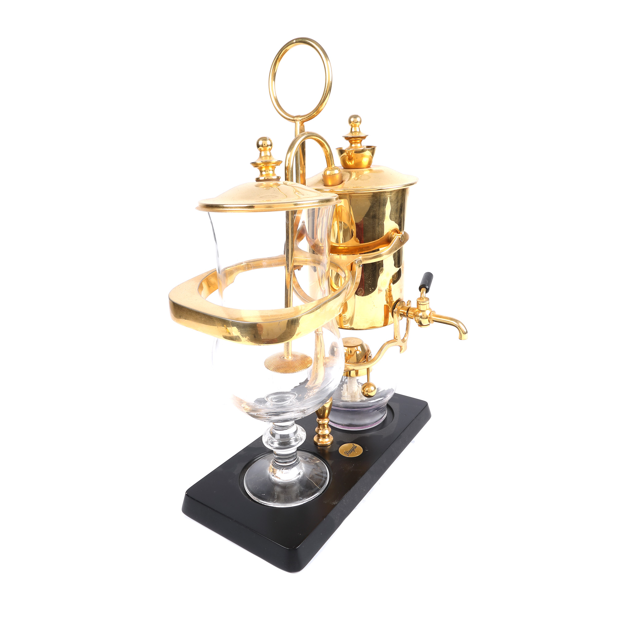 131. Percolator pentru cafea cu spirtieră și linguriță, marca Royal Belgium, mijlocul sec. XX