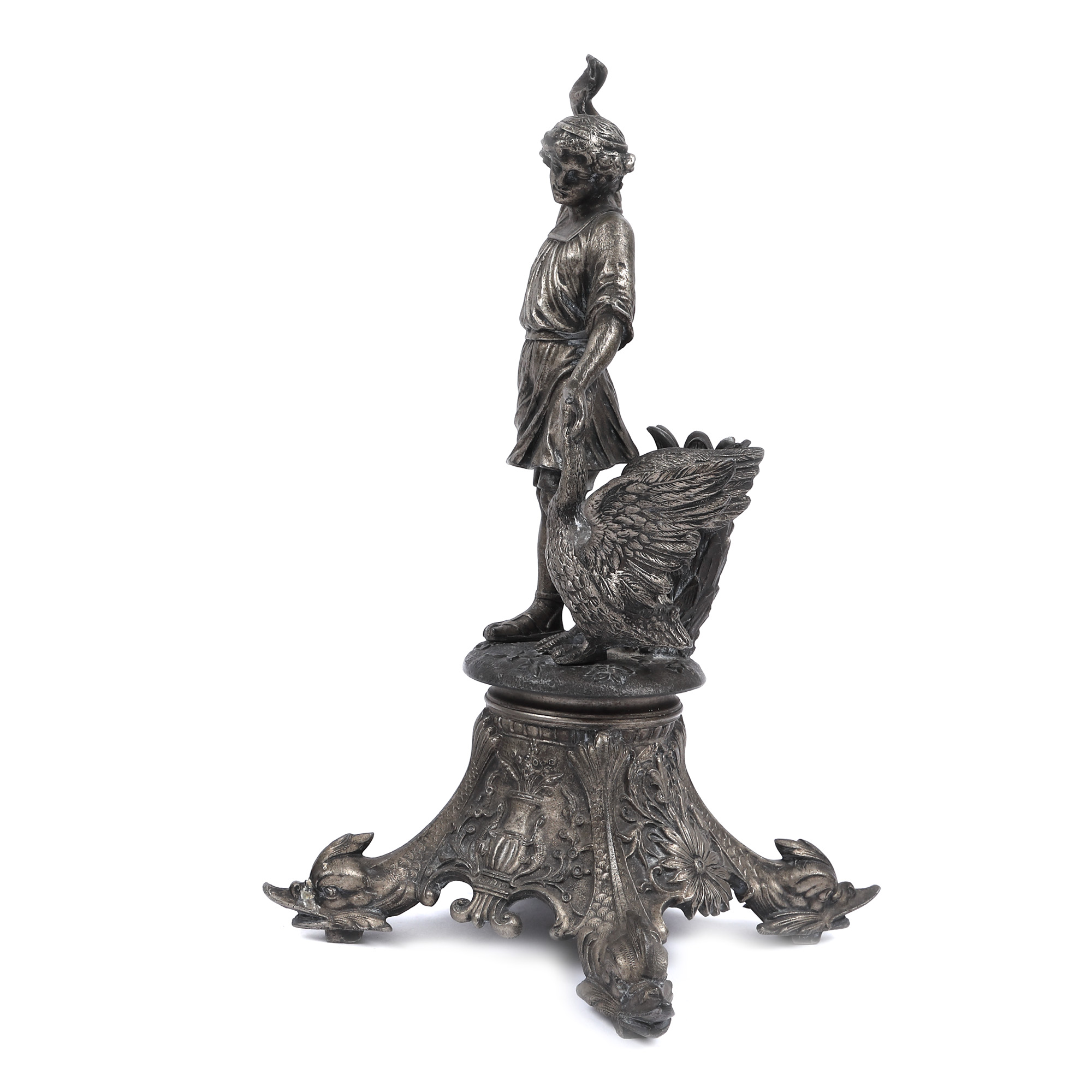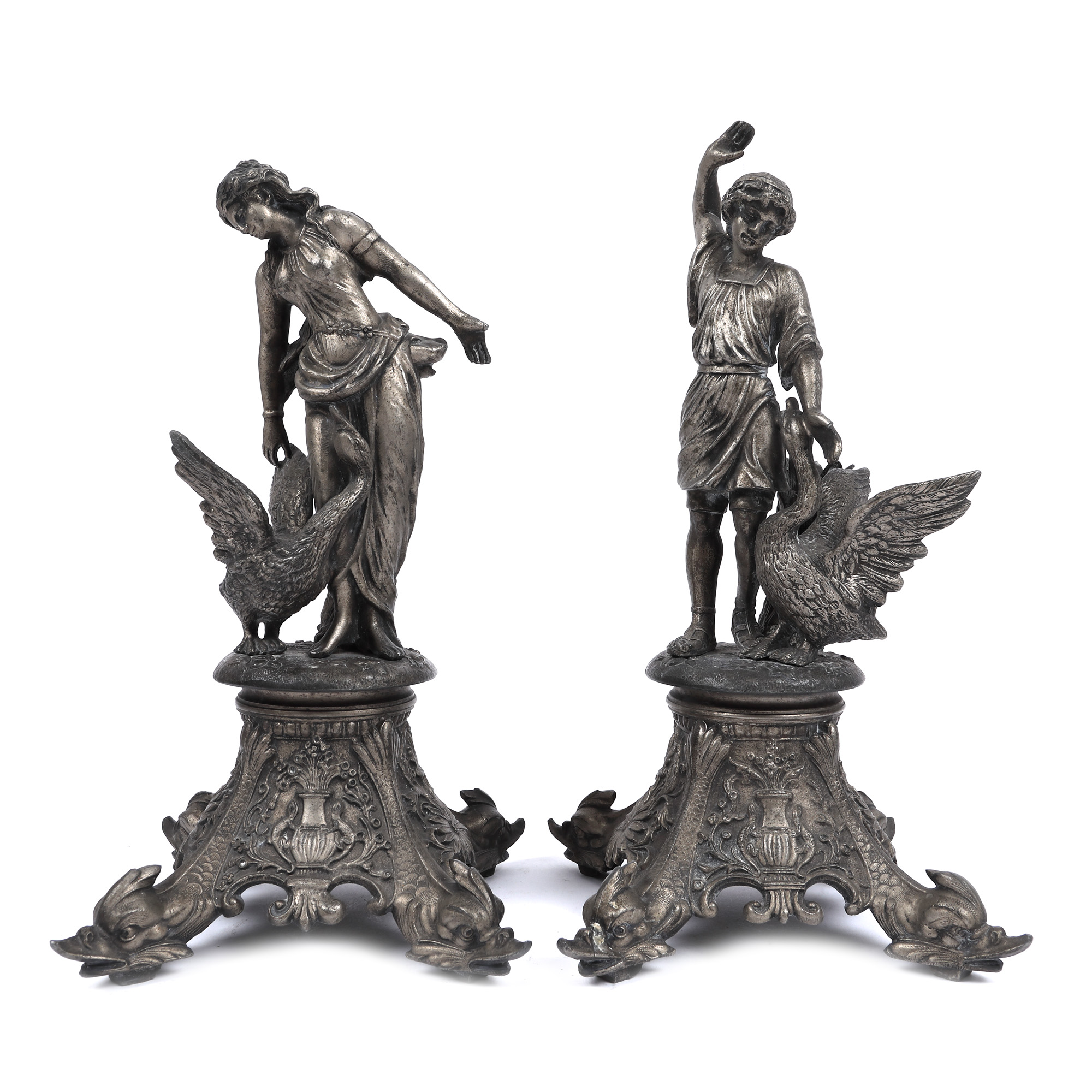 94. Pereche de sfeșnice din bronz, decorată cu păstor și păstoriță, sec. XIX