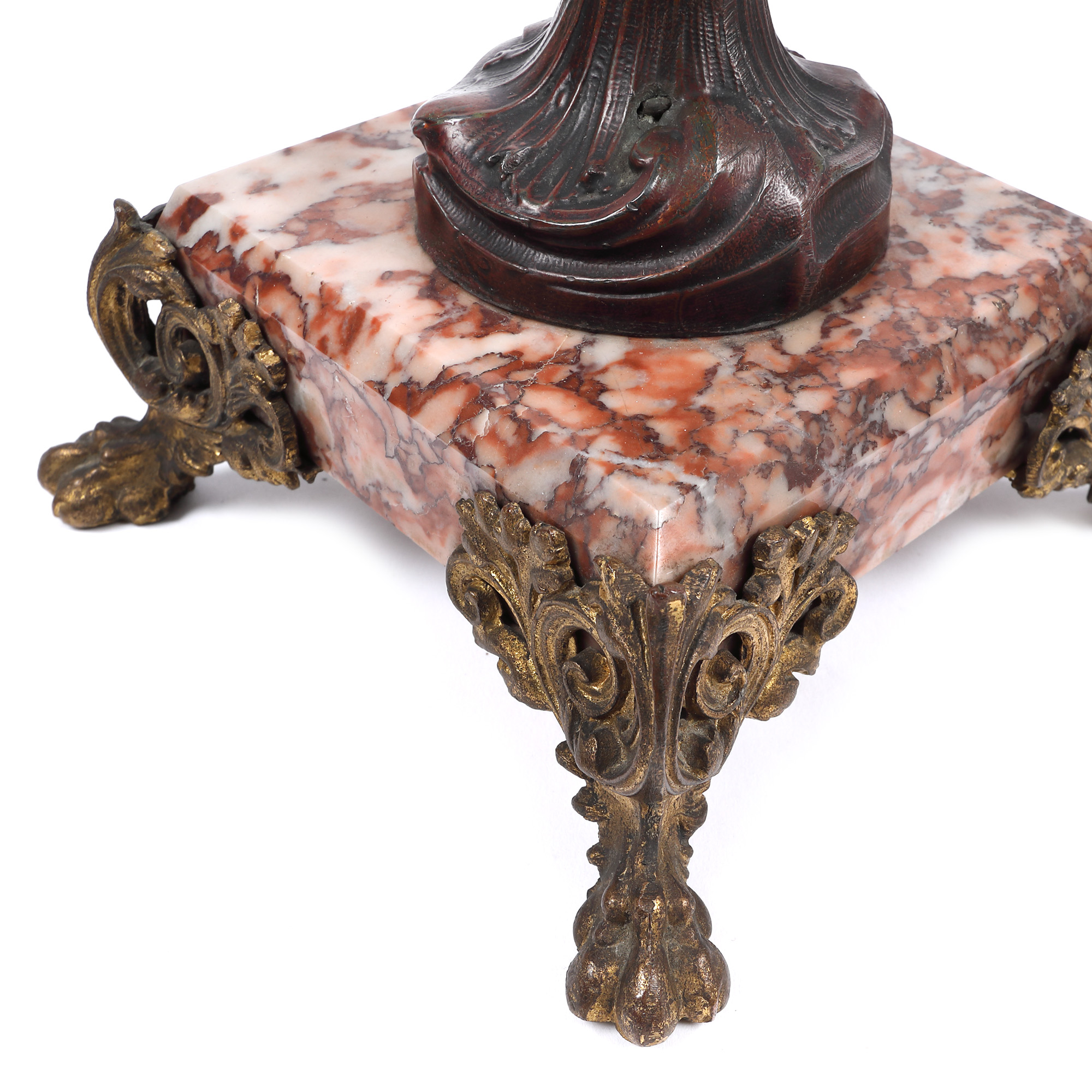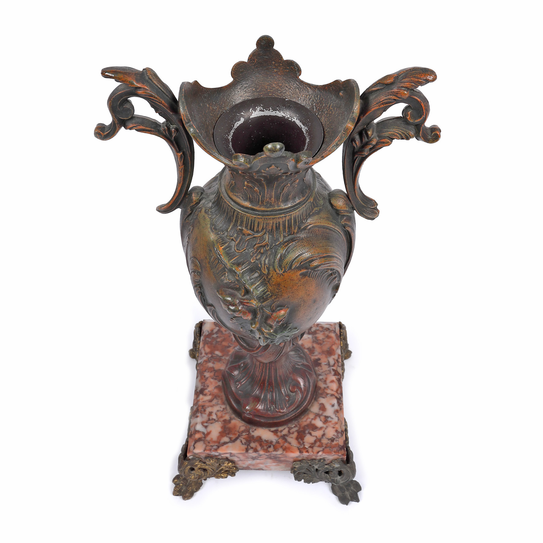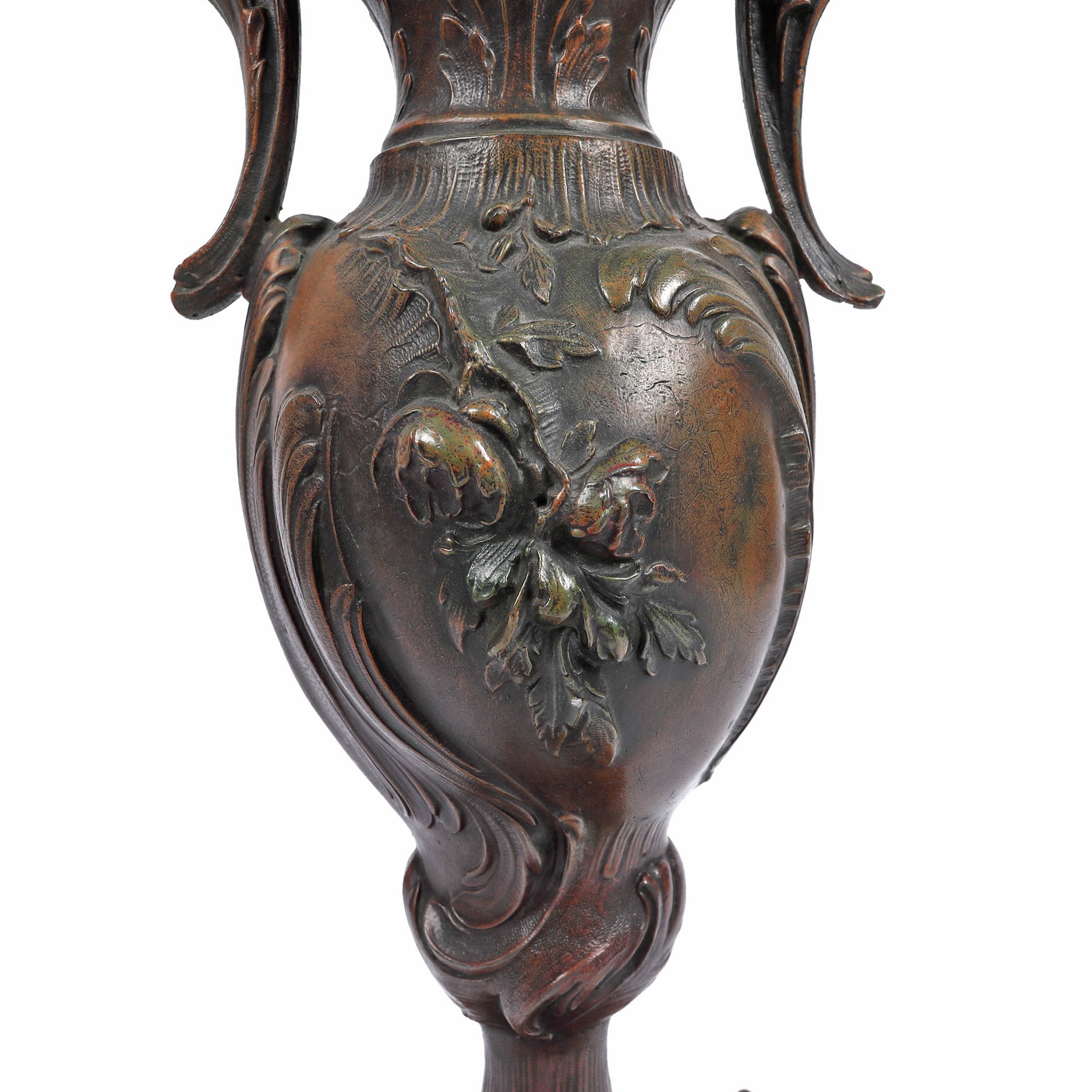 136. Pereche de vase decorative din bronz, cu soclu din marmură, sfârșitul sec. XIX
