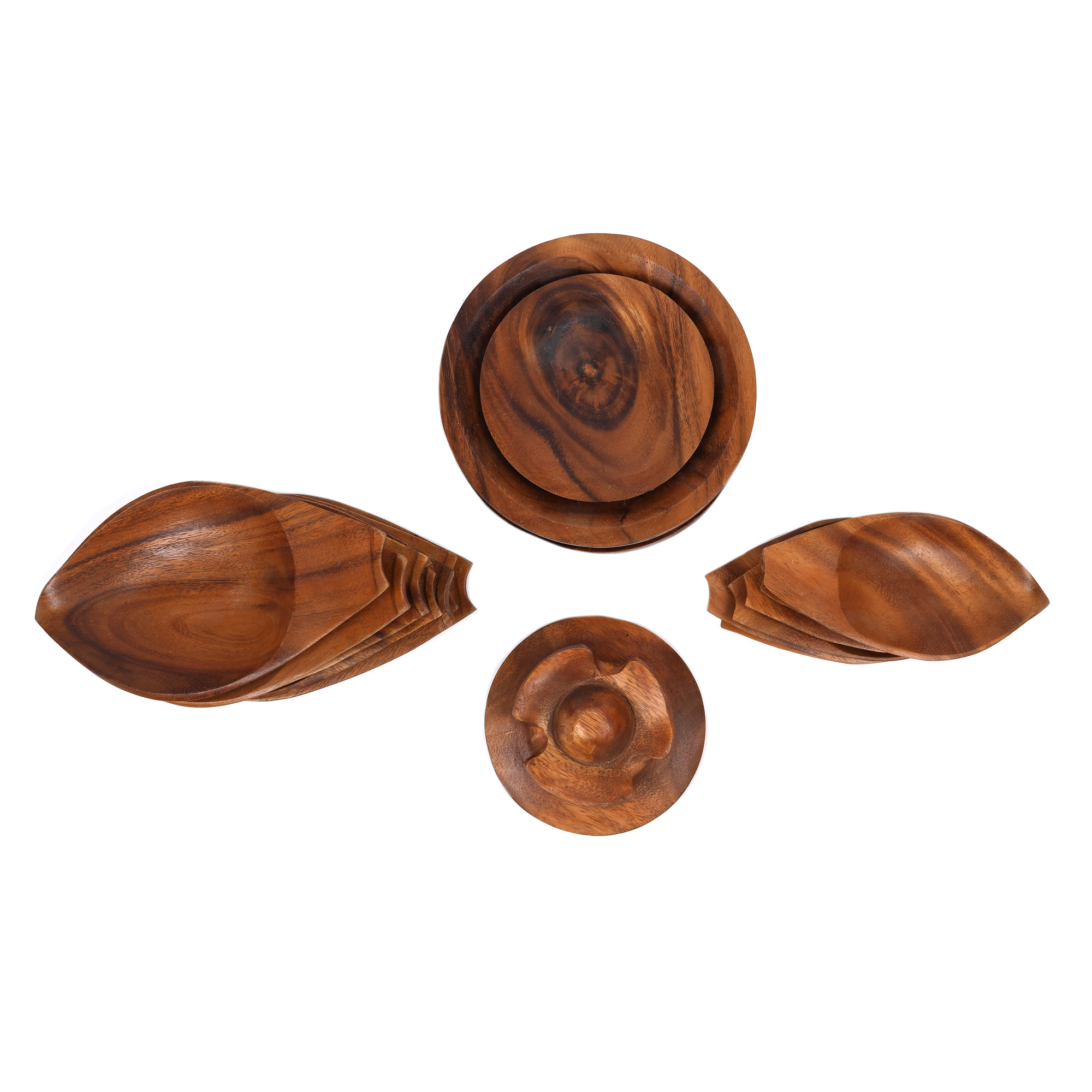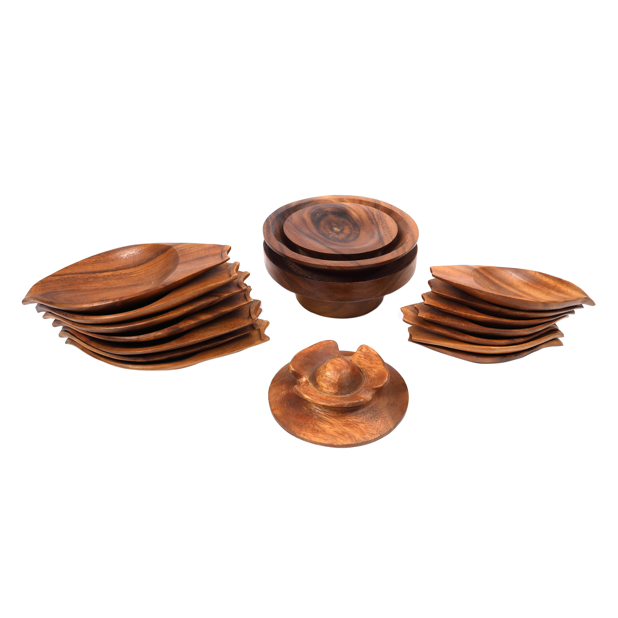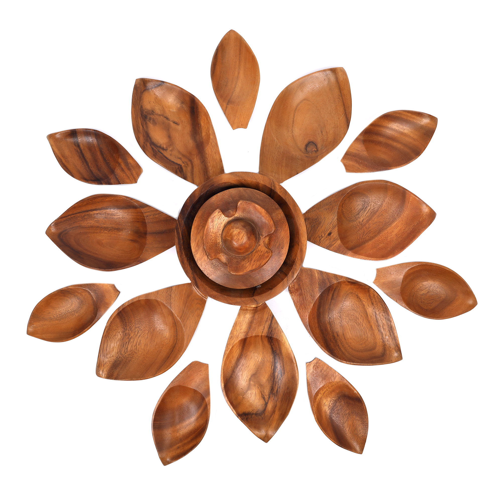 143. Set de platouri pentru aperitive, din lemn, în formă de floare de lotus [Sec. XXI]