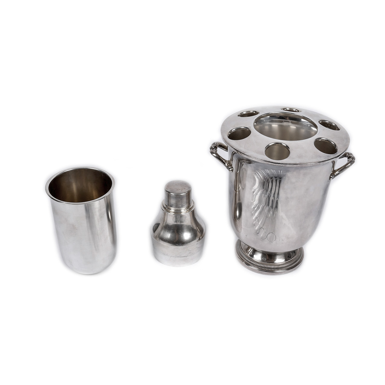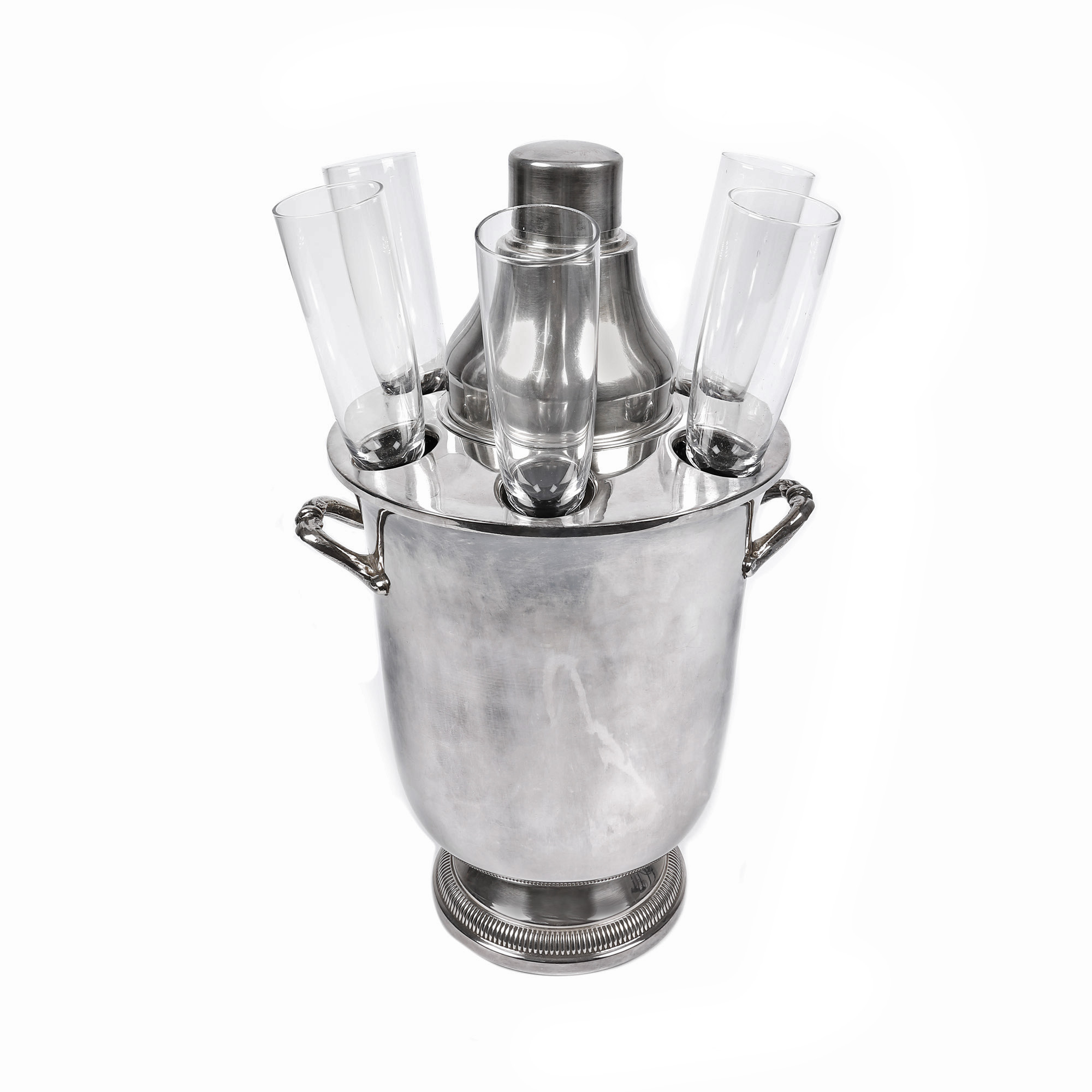 117. Suport pentru sticlă de șampanie, cu frapieră, șase pahare și shaker pentru cocktail [Cca. 1970-1980]