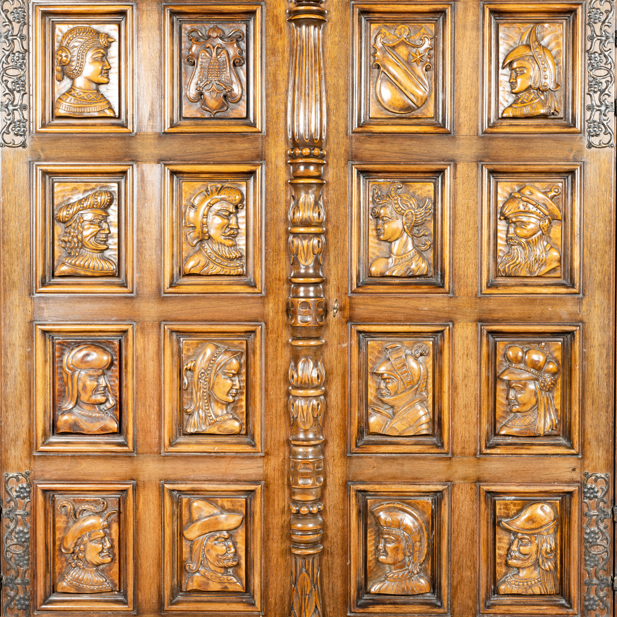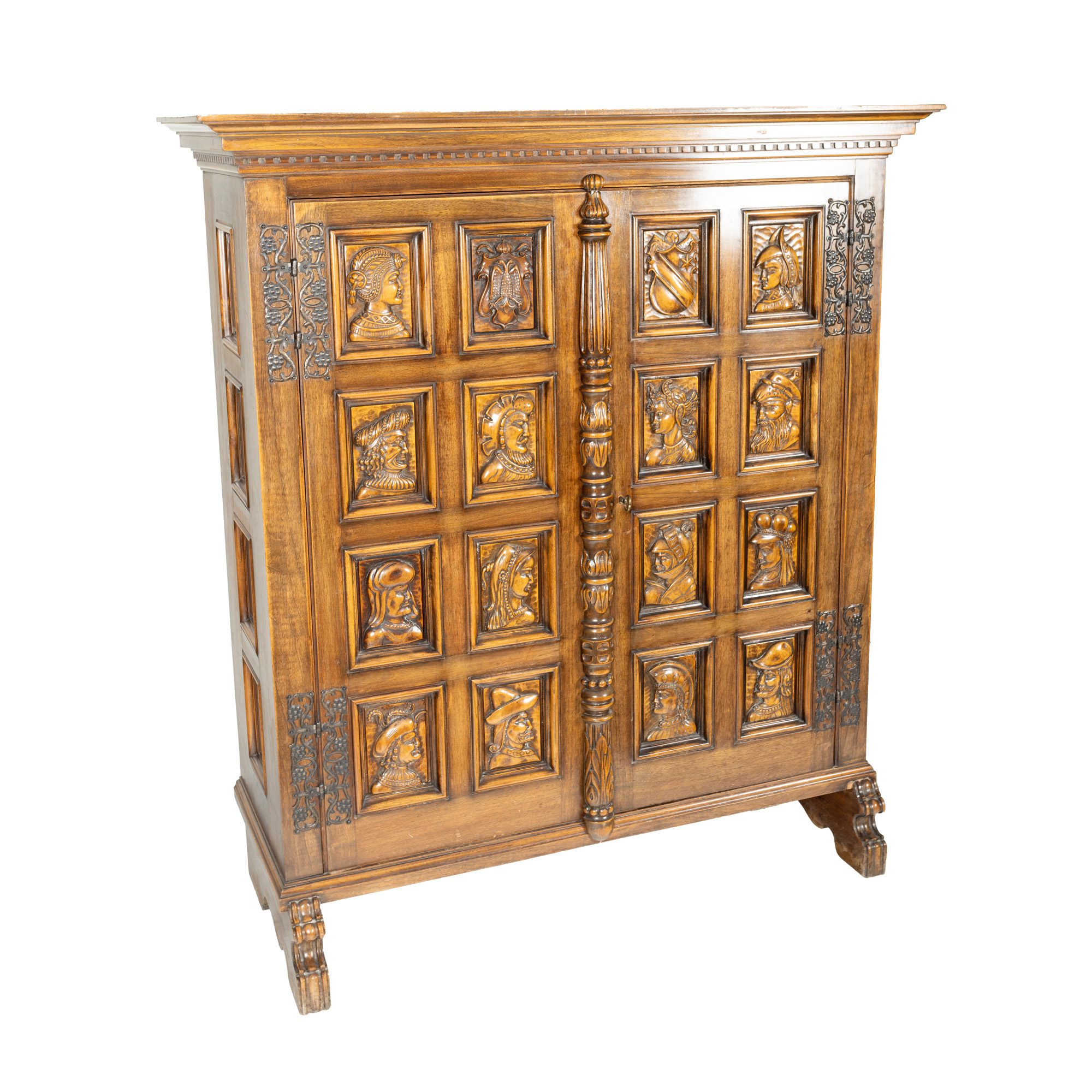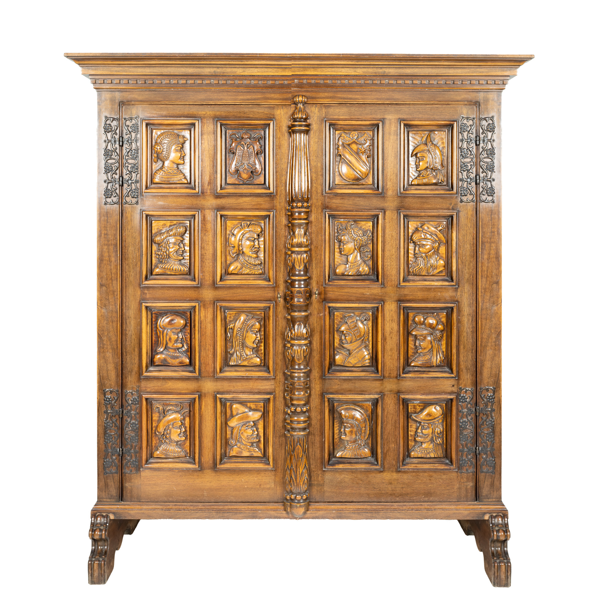 86. Armoir Neo-Renascentist din lemn de stejar, decorat cu personaje și alegorii heraldice, prima jumătate a sec. XX