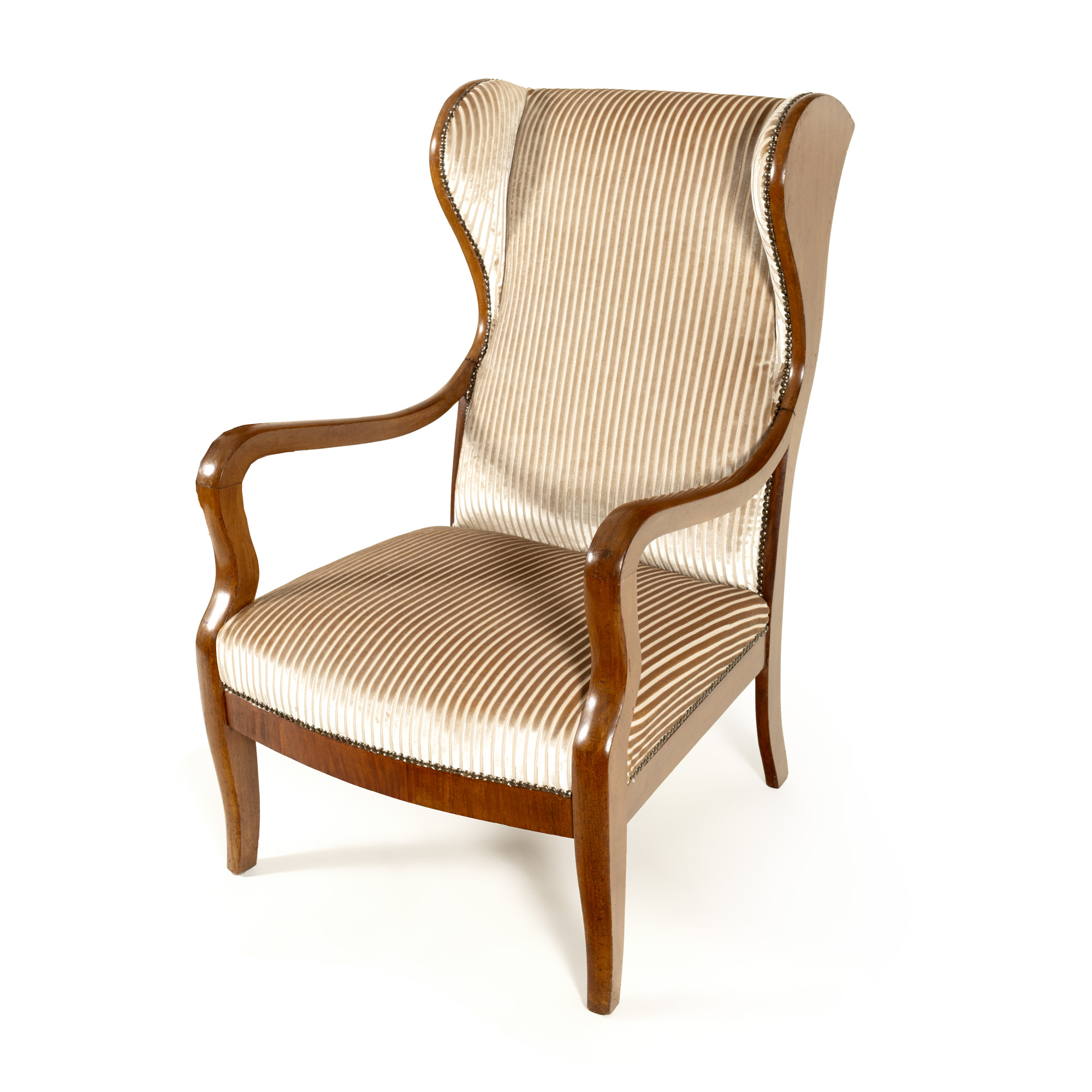 22. Bergère Biedermeier, lemn de nuc și velur, cca. 1900