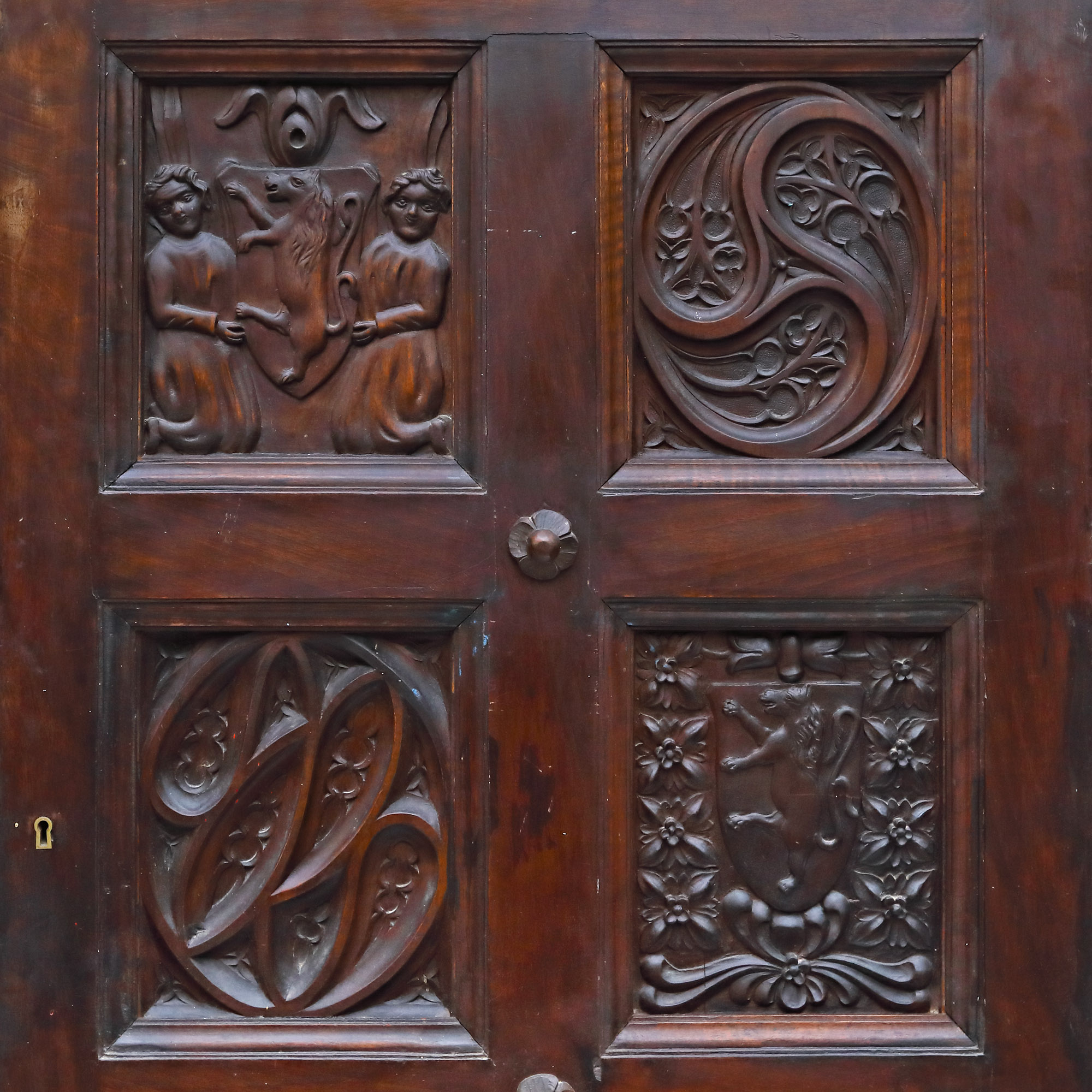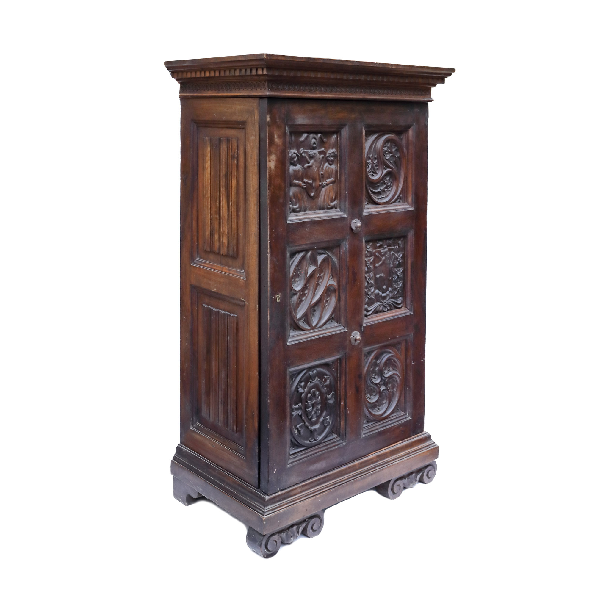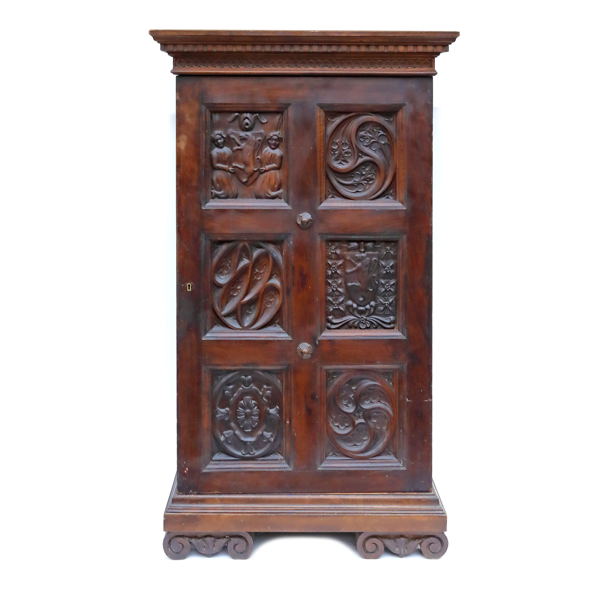 73. Cabinet Neo-Gotic din lemn sculptat, decorat cu registre figurative, heraldice și rozete gotice, mijlocul sec. XIX