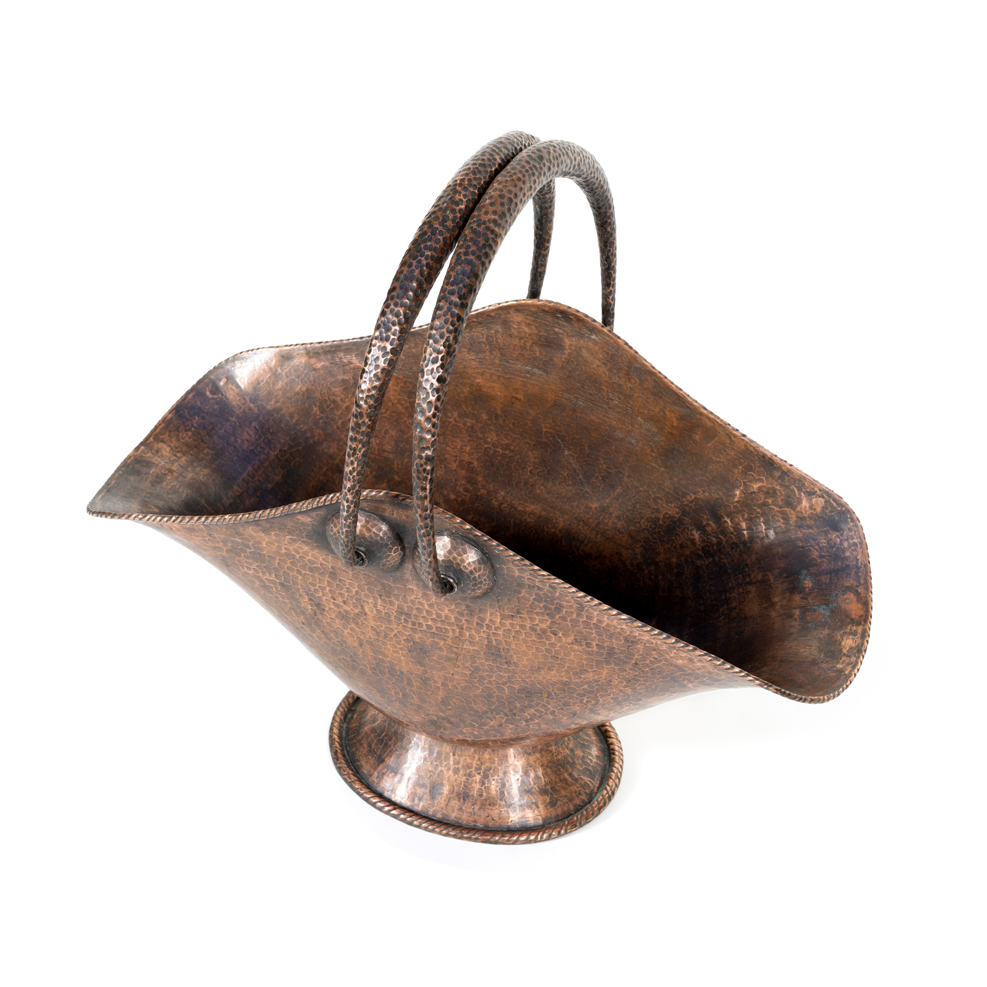 53. Coș pentru lemne, din cupru martelat, mijlocul sec. XX
