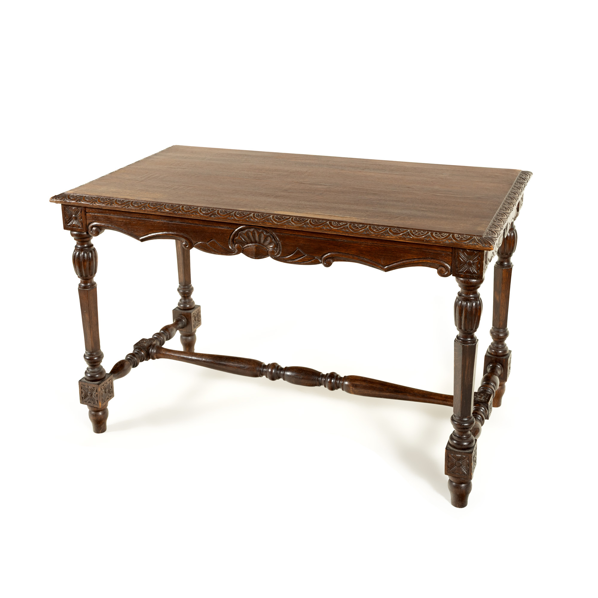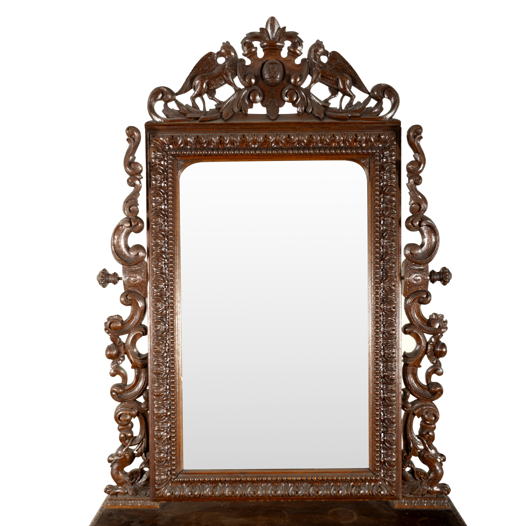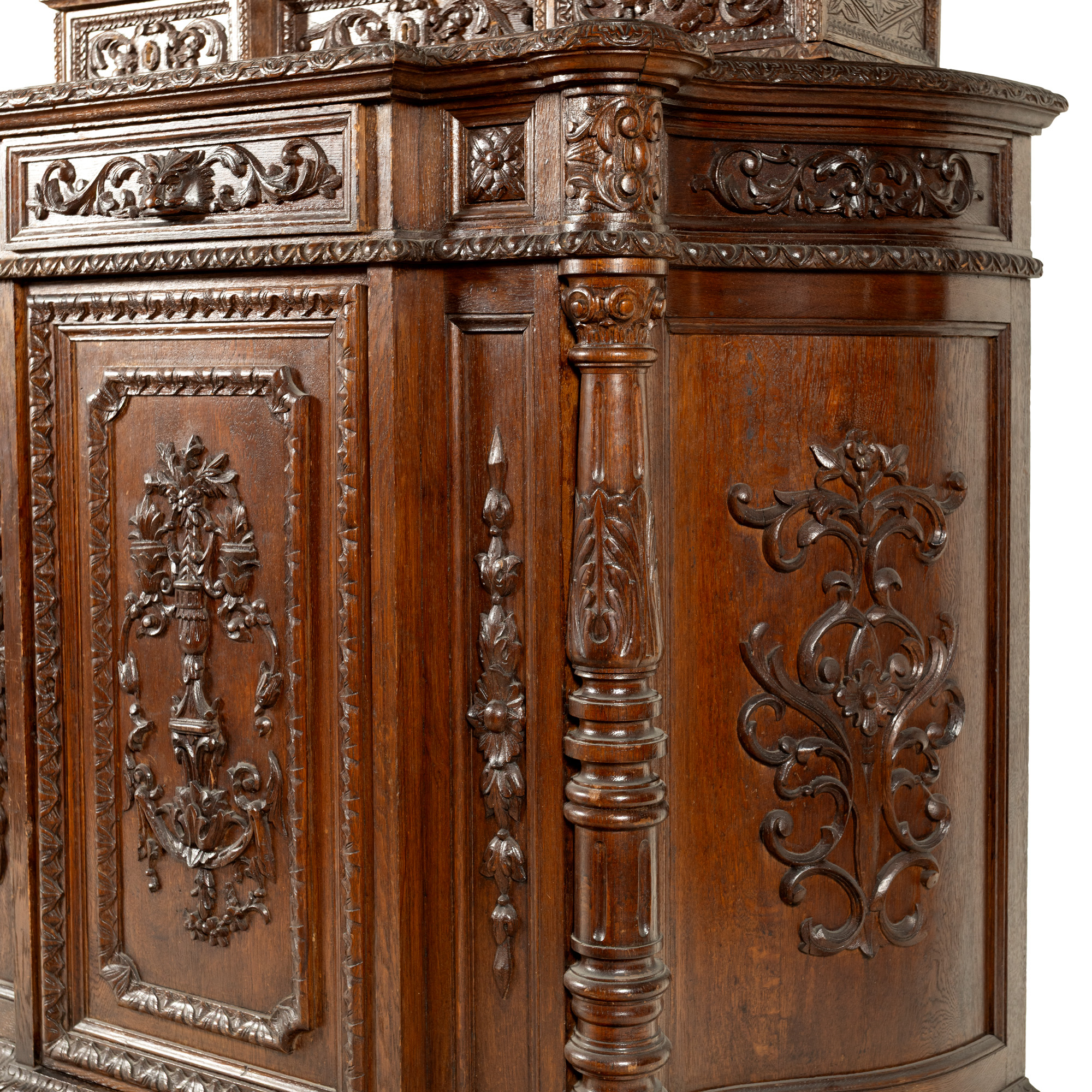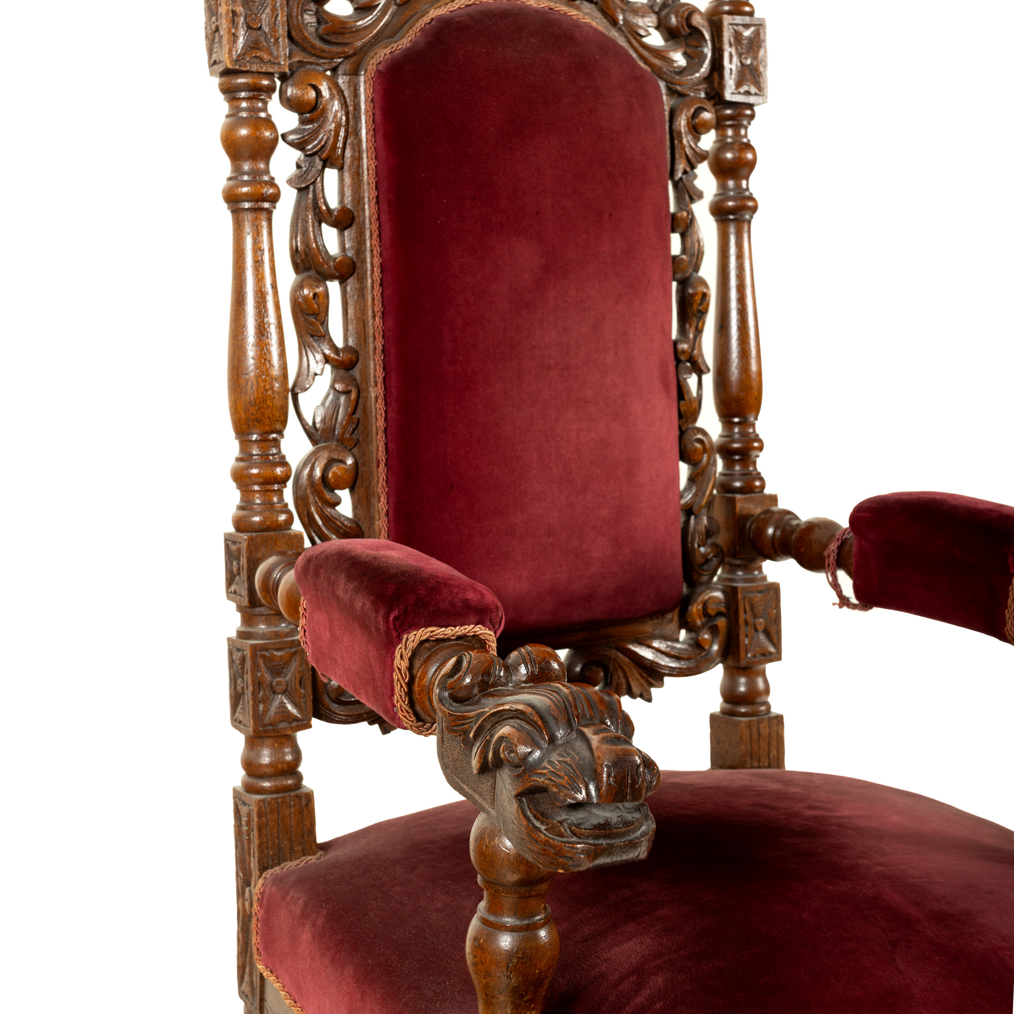 69. Garnitură pentru salon Neo-Gotic, formată din credență, masă, banchetă, pereche de scaune și fotolii, monogramată ”M”, sfârșitul sec. XIX