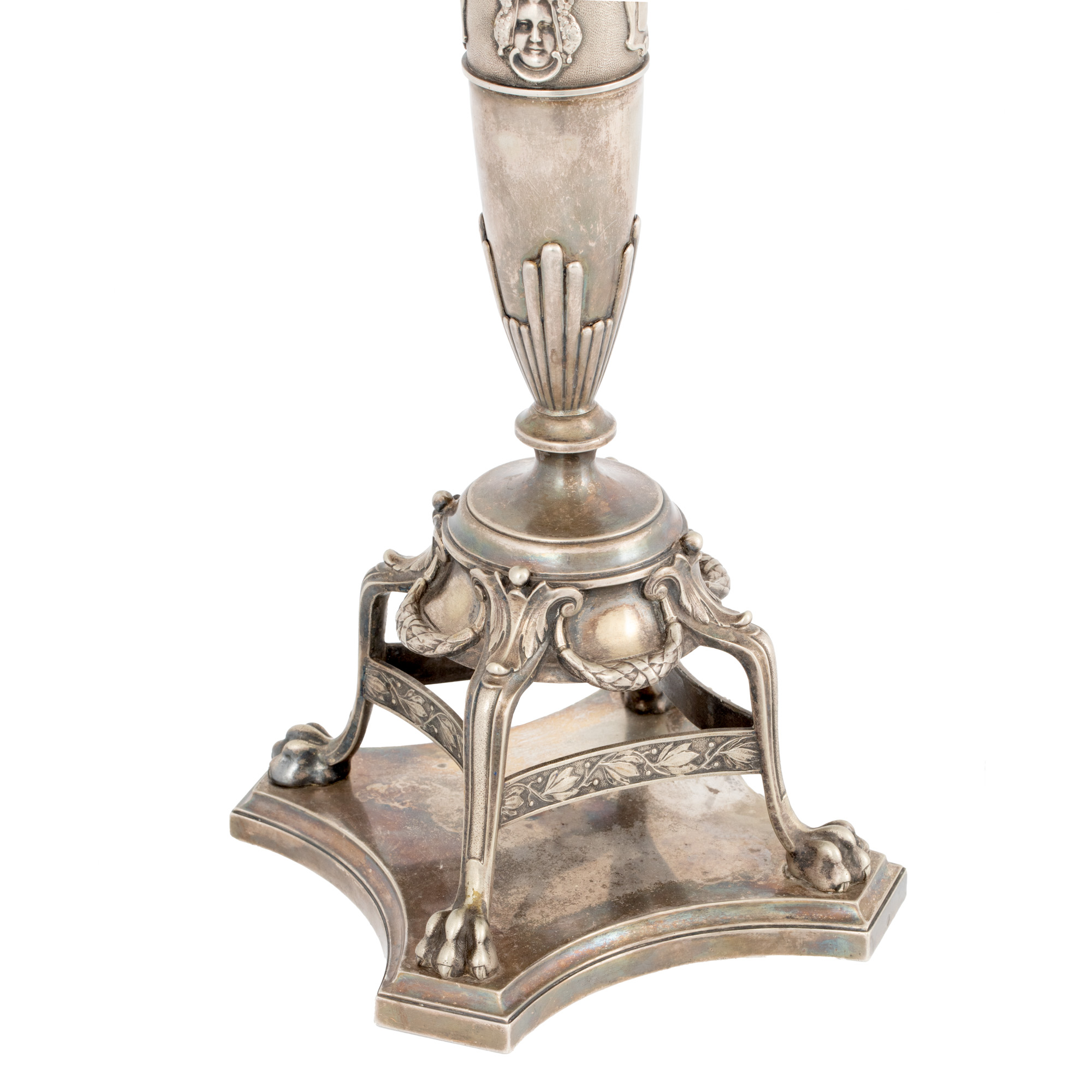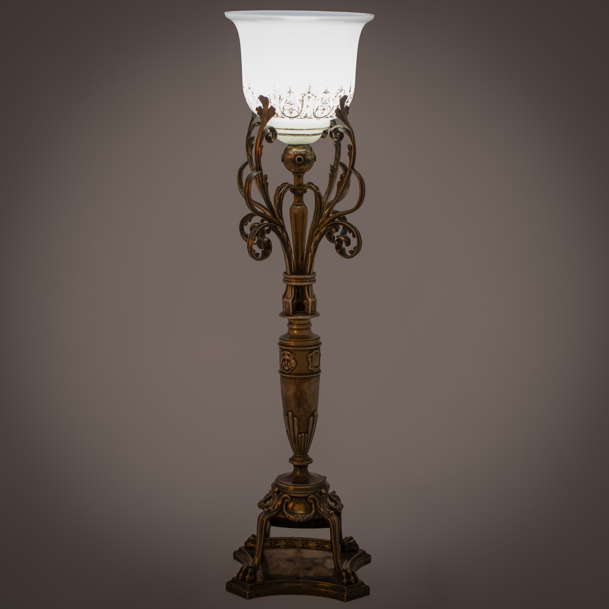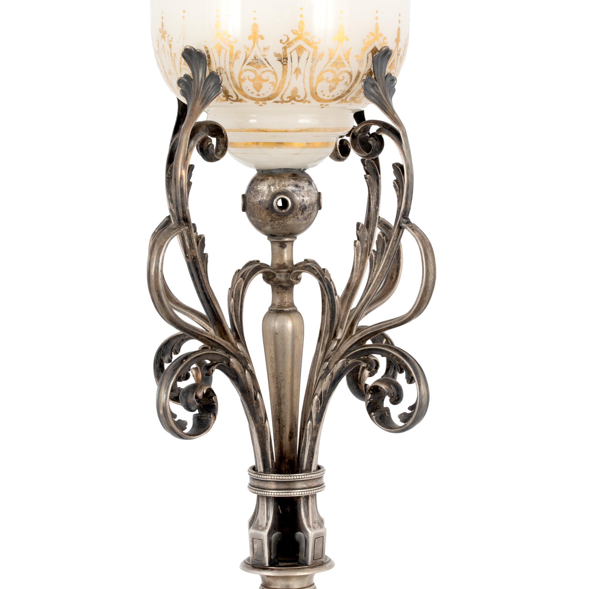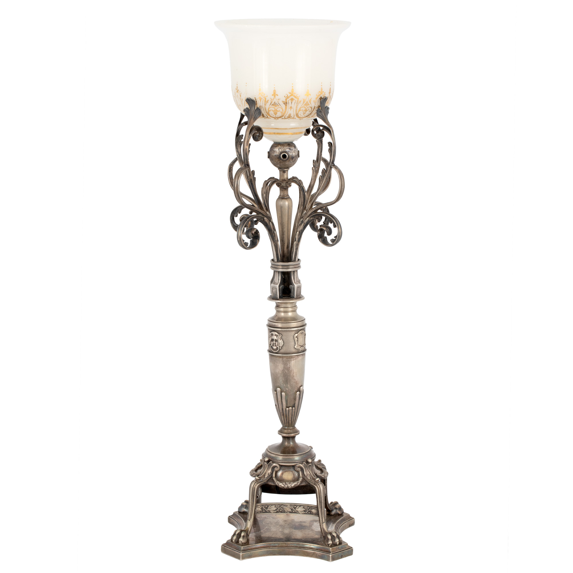 76. Lampă de birou în manieră Napoleon III, argintată, ornată cu elemente clasice, cca. 1920