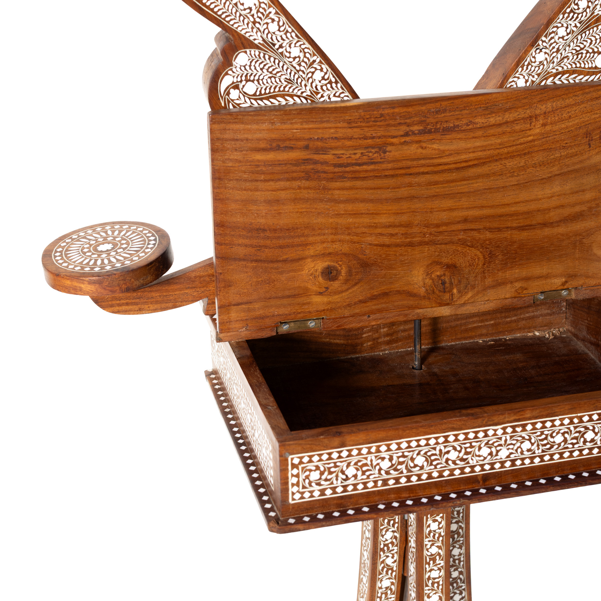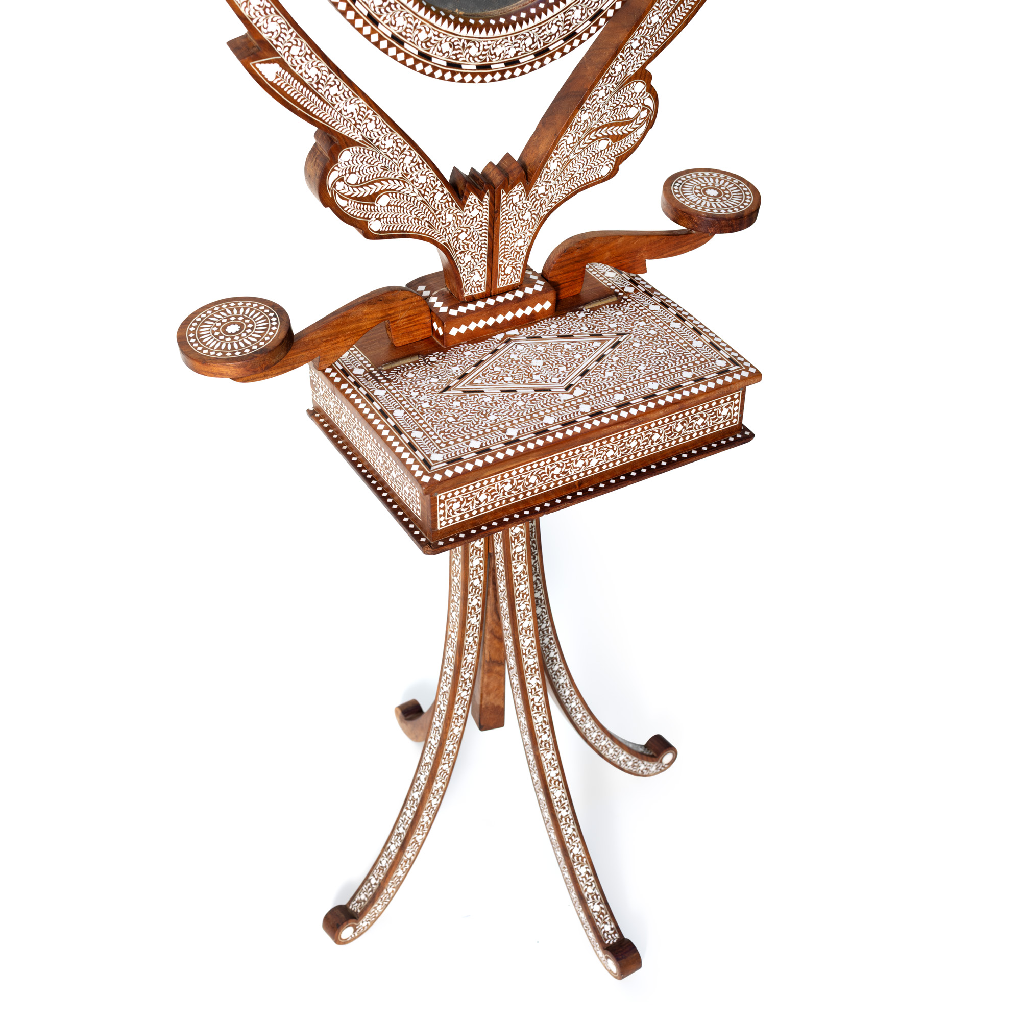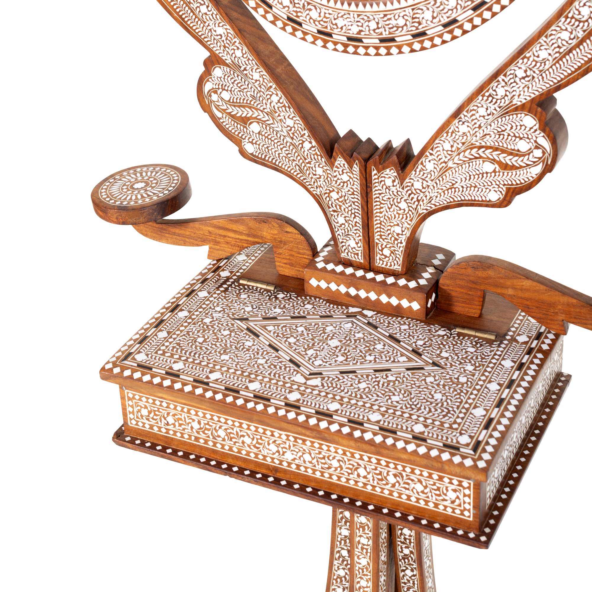 117. Măsuță de machiaj în manieră Maură, din lemn exotic intarsiat cu os, mijlocul sec. XX