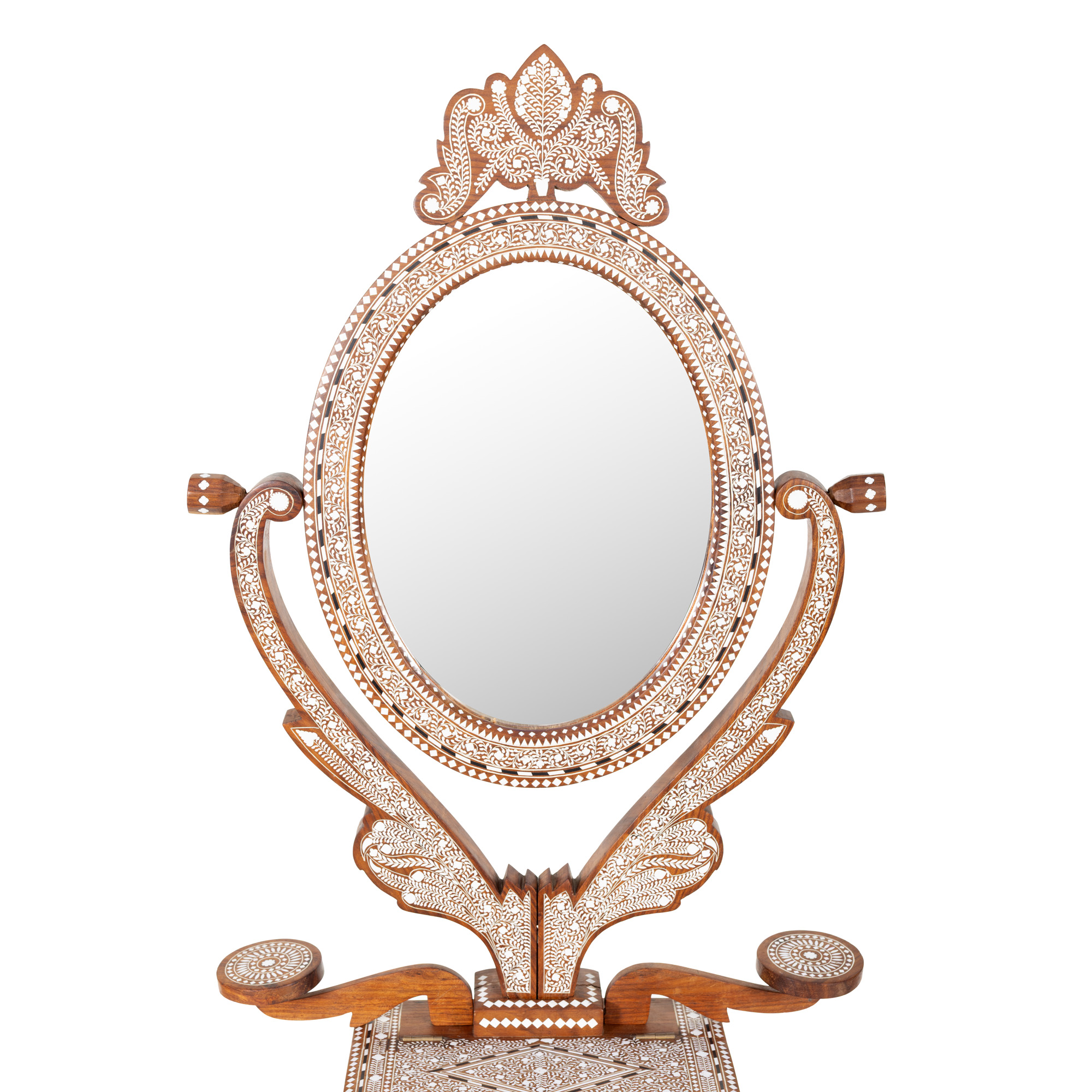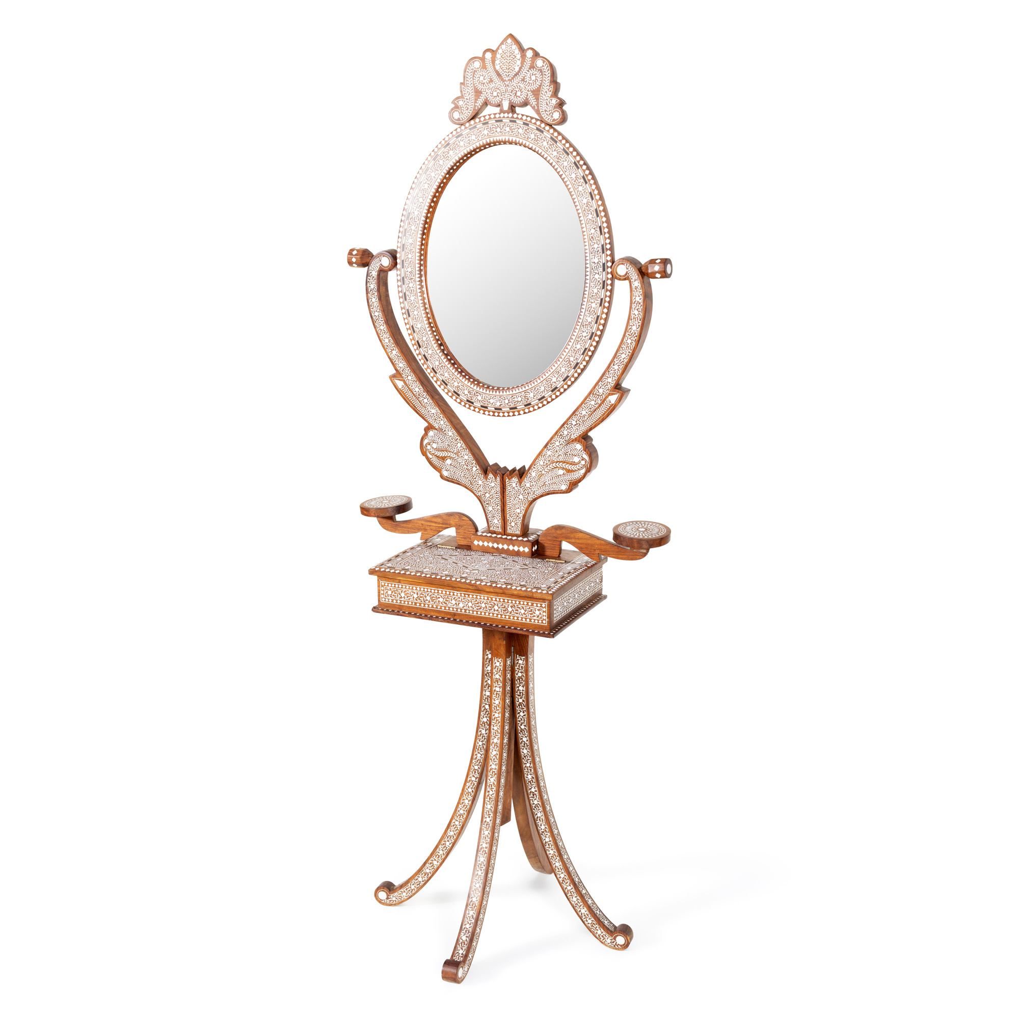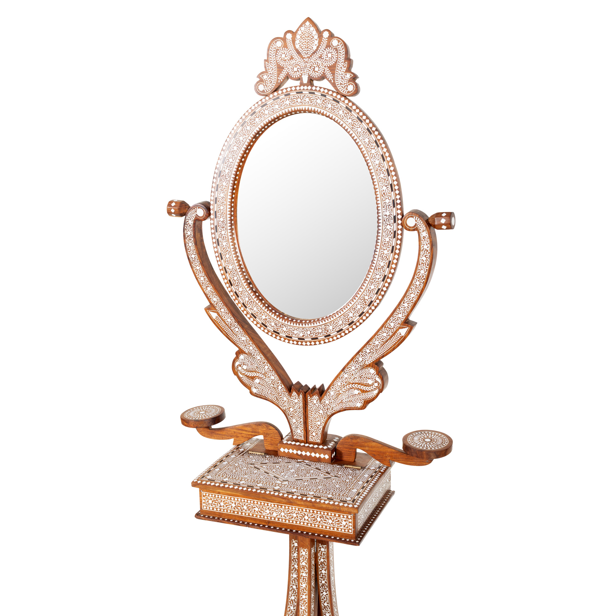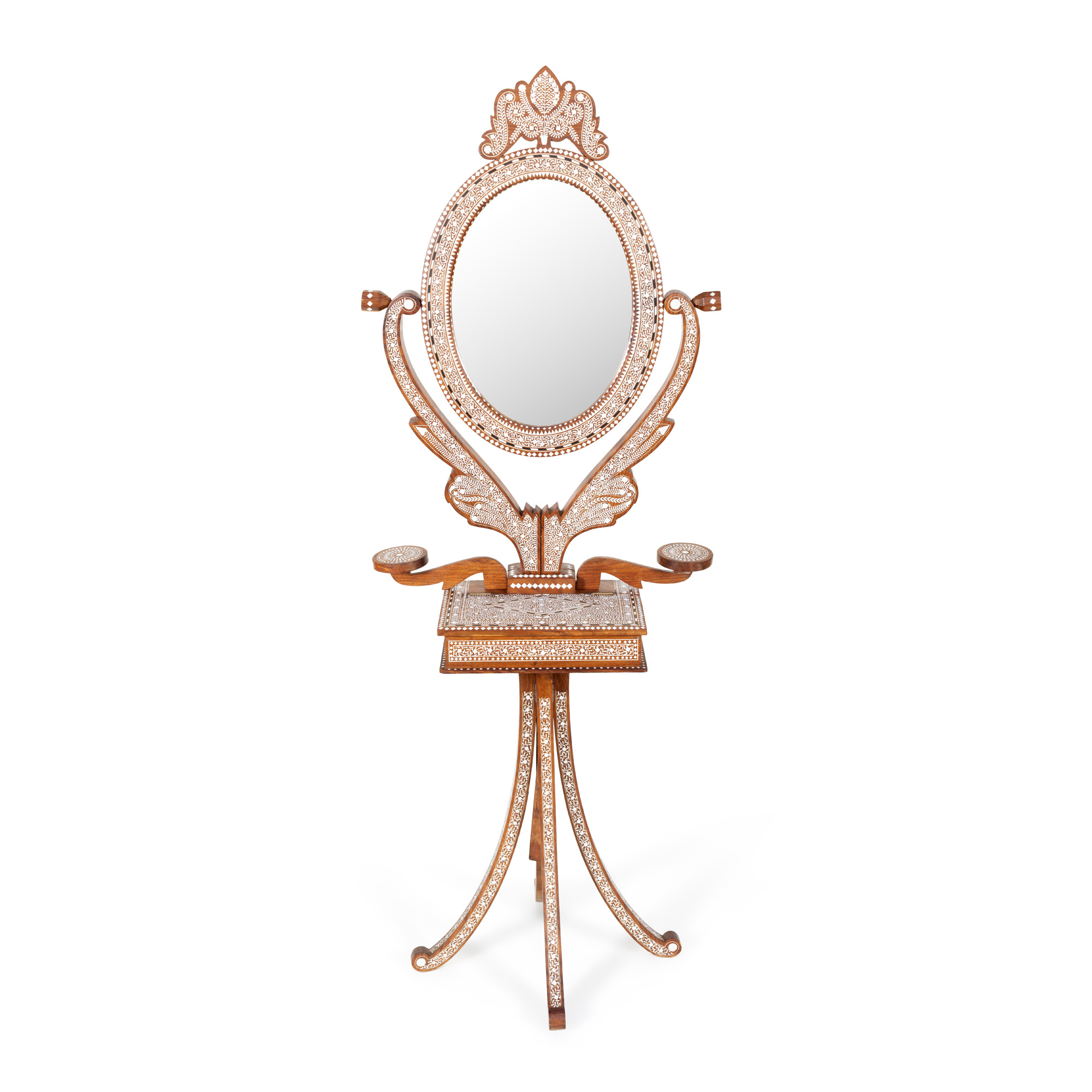117. Măsuță de machiaj în manieră Maură, din lemn exotic intarsiat cu os, mijlocul sec. XX