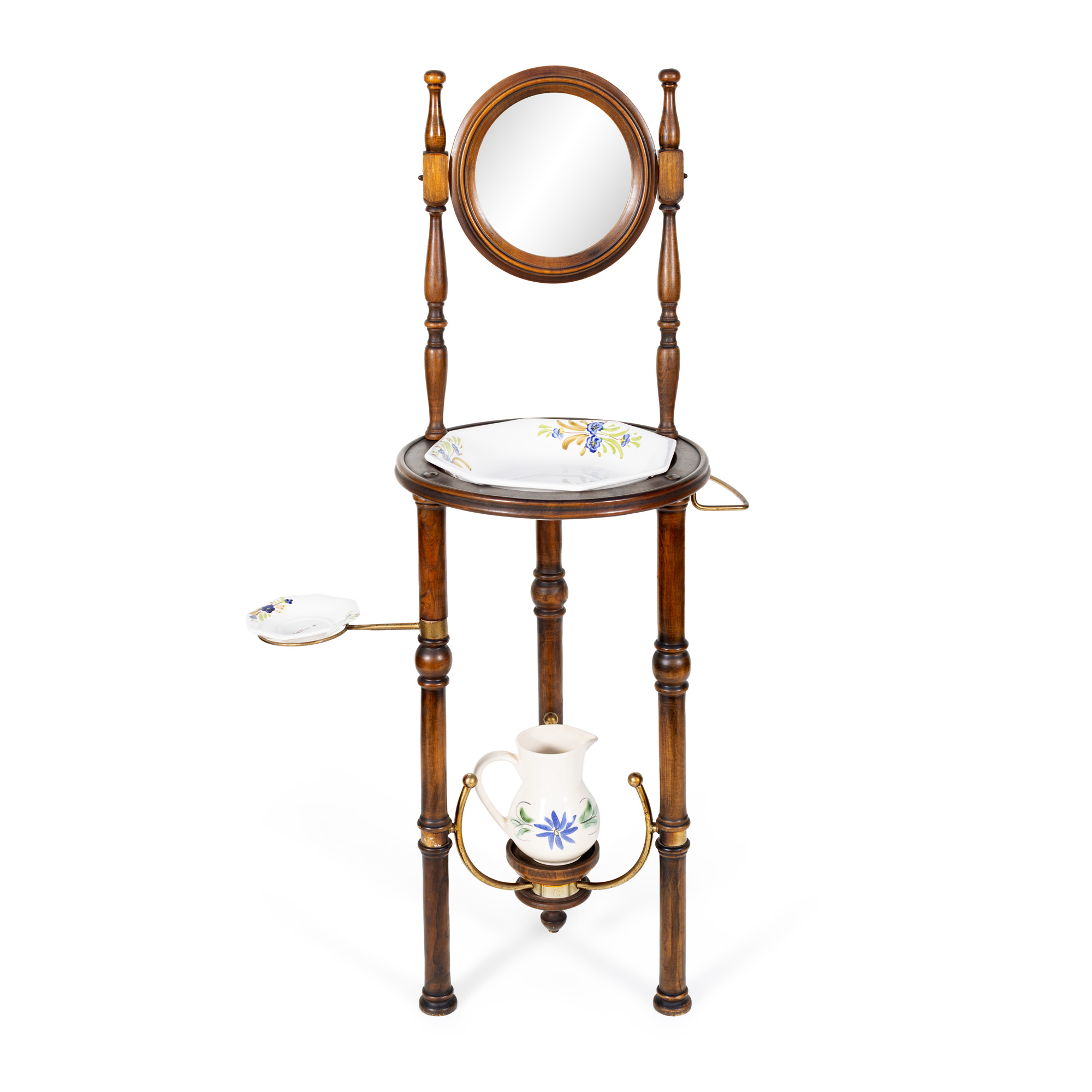 61. Măsuță de toaletă în manieră Victoriană, însoțită de lavoar, carafă și săpunieră, mijlocul sec. XX