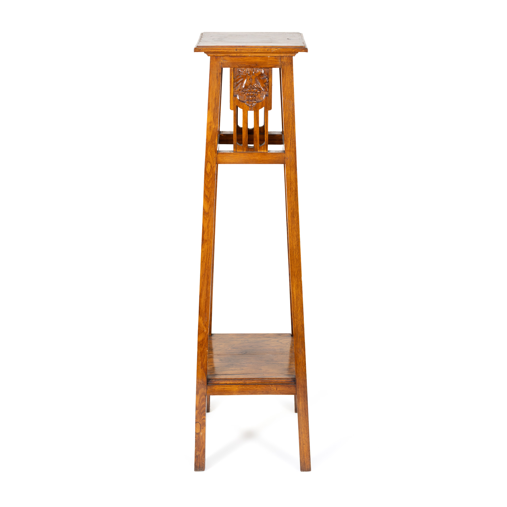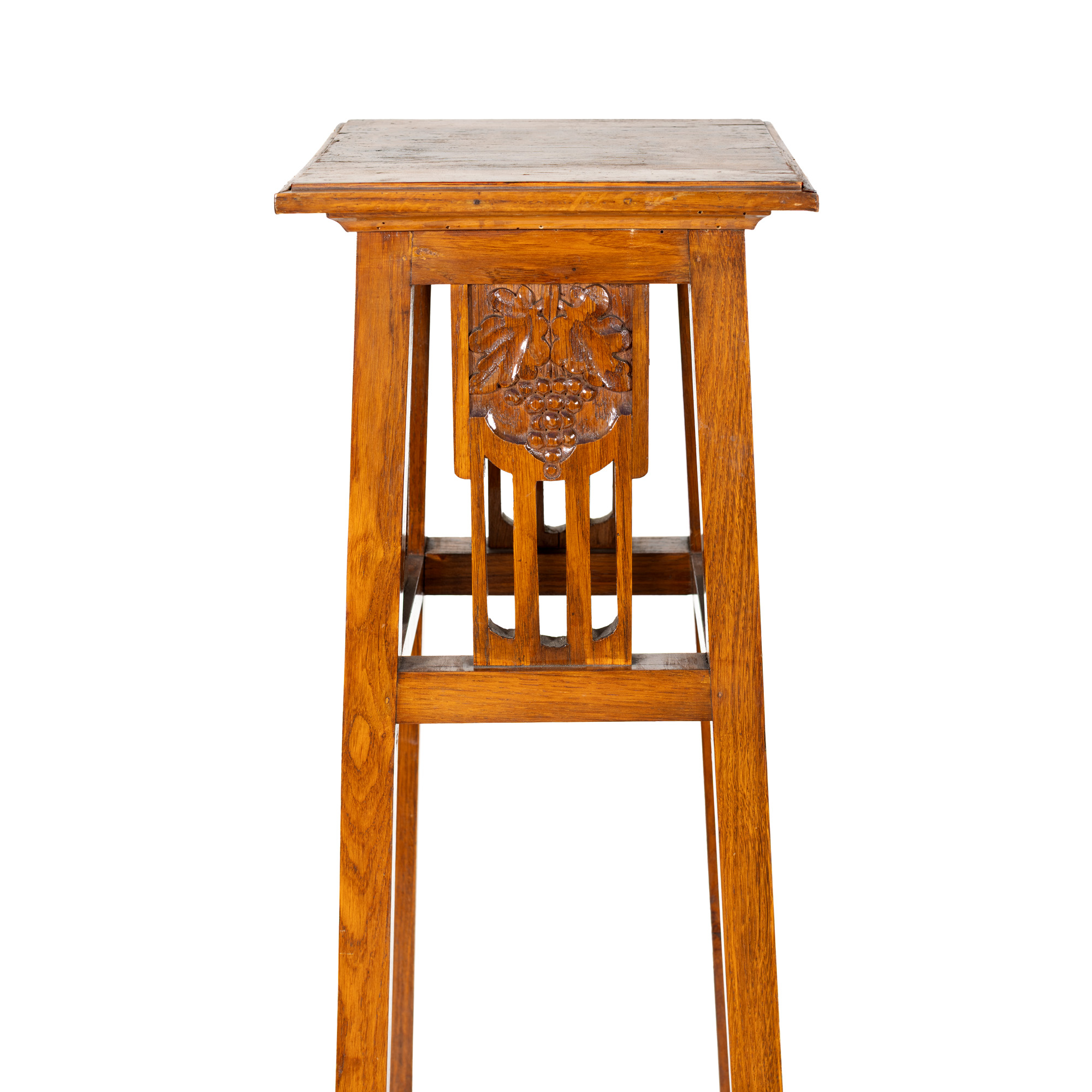 3. Piedestal Art Nouveau, din lemn de nuc, decorat cu motive bahice, cca. 1910