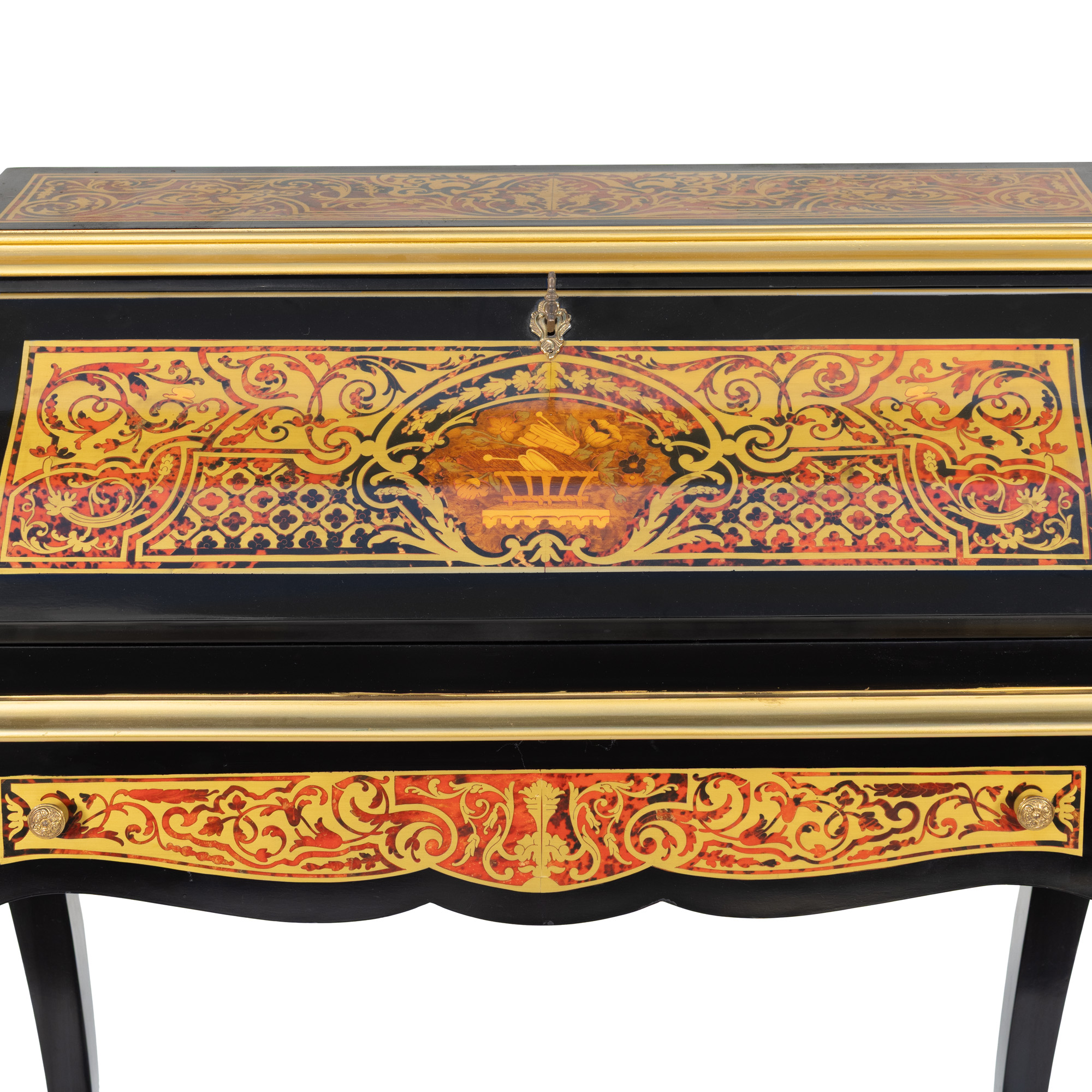 39. Secretaire ”bonheur du jour”, din lemn ebenizat, ornat cu marchetărie tip Boulle, începutul sec. XX