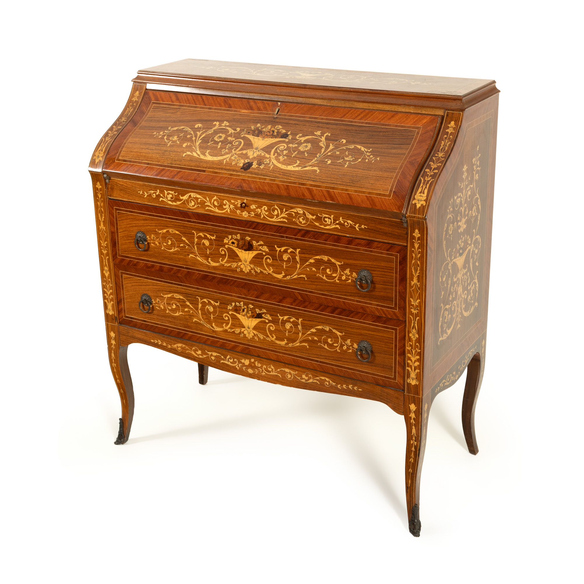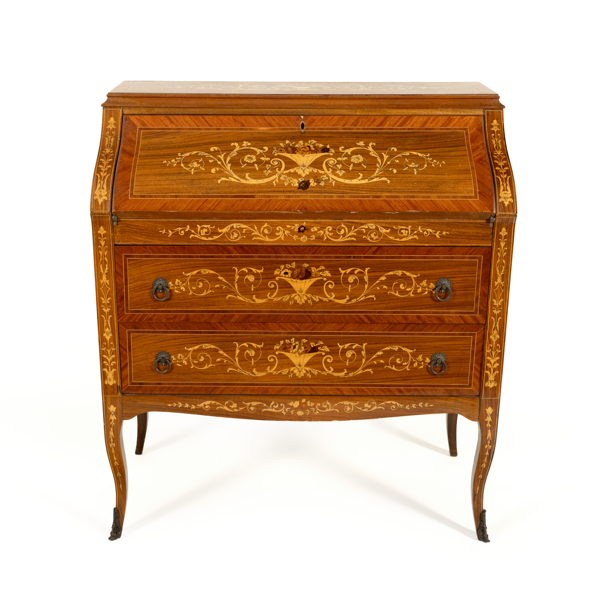 41. Secretaire în stil Neo-Baroc, ornat cu ghirlande florale intarsiate, sfârșitul sec. XIX