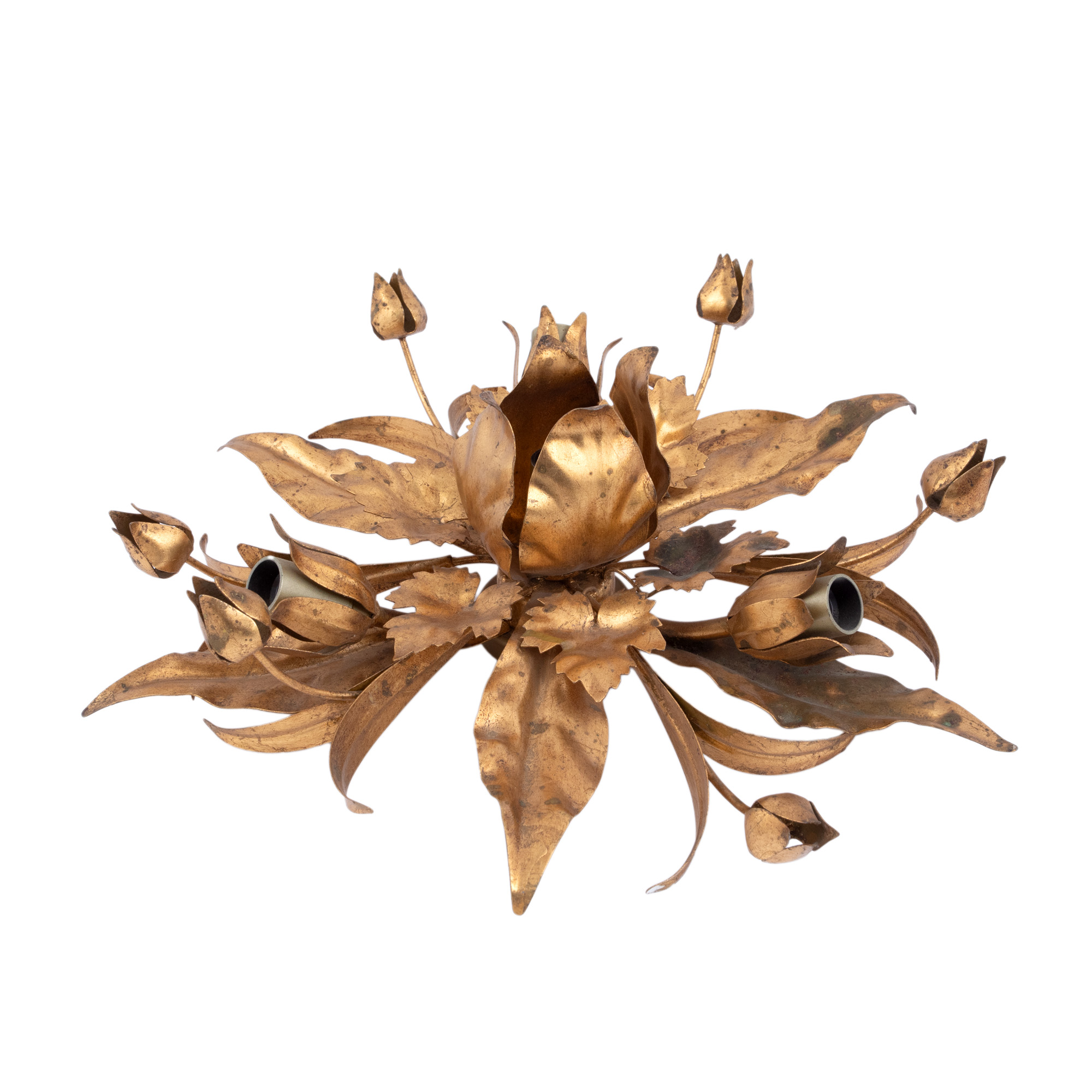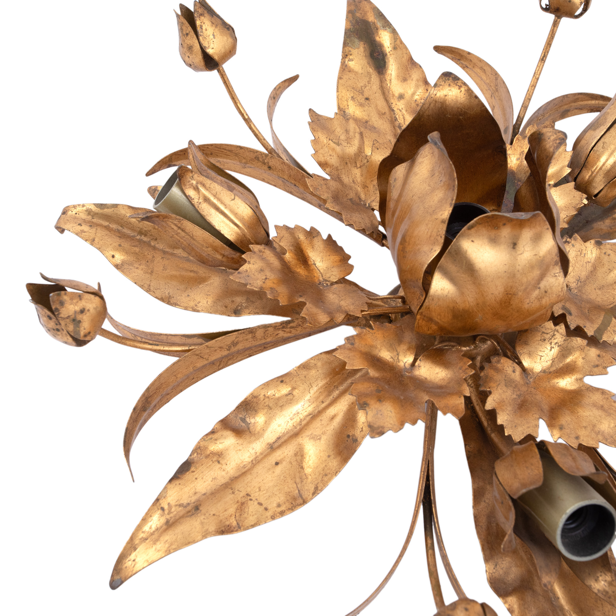 25. Amplă aplică din alamă aurită, decorată cu boboci de lalele și frunze de arțar, mijlocul sec. XX