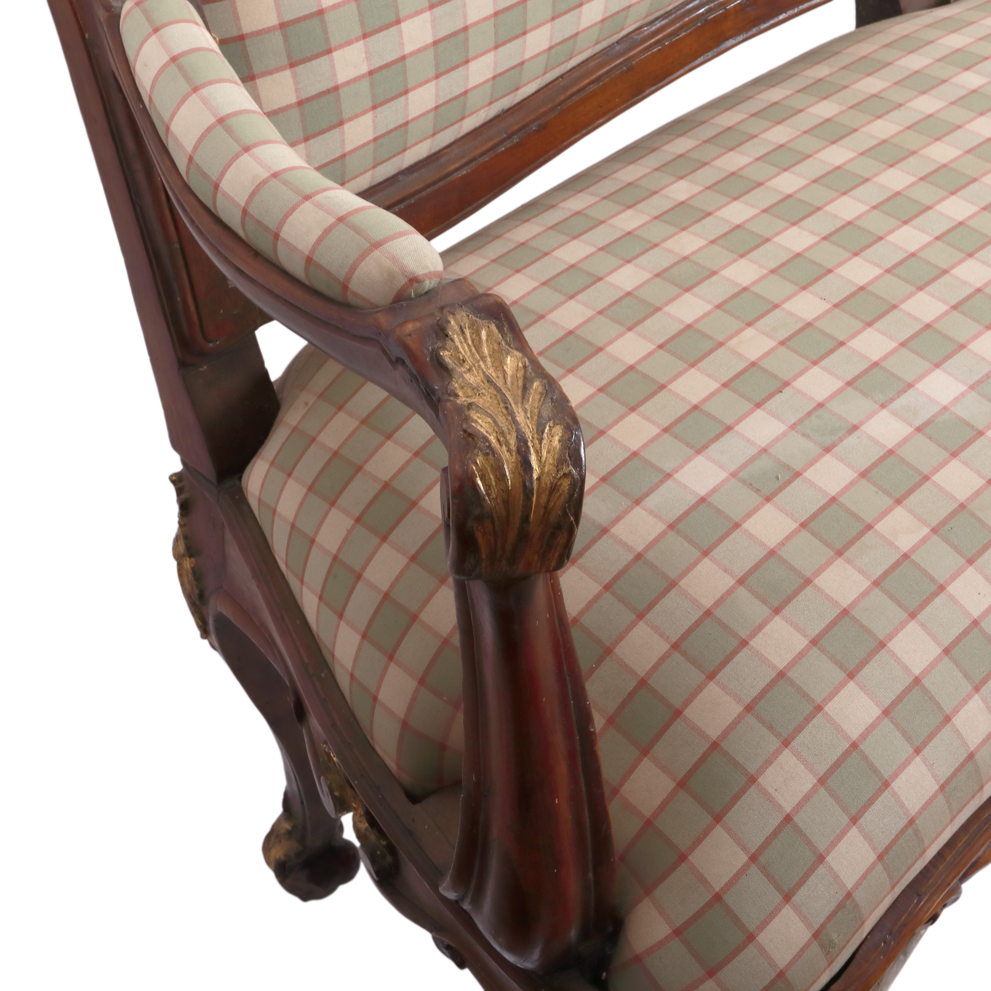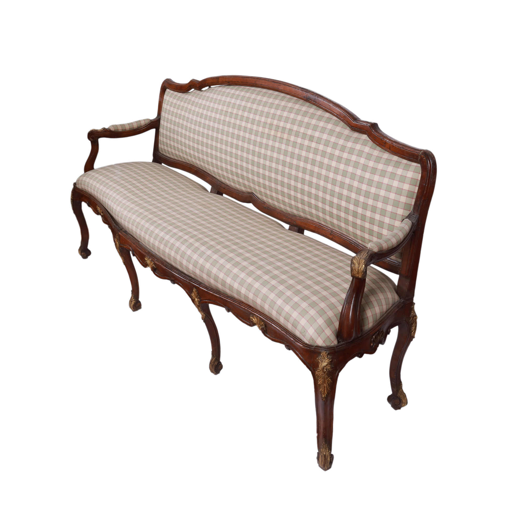67. Canapea Louis XV, din lemn de nuc cu detalii aurite, mijlocul sec. XIX