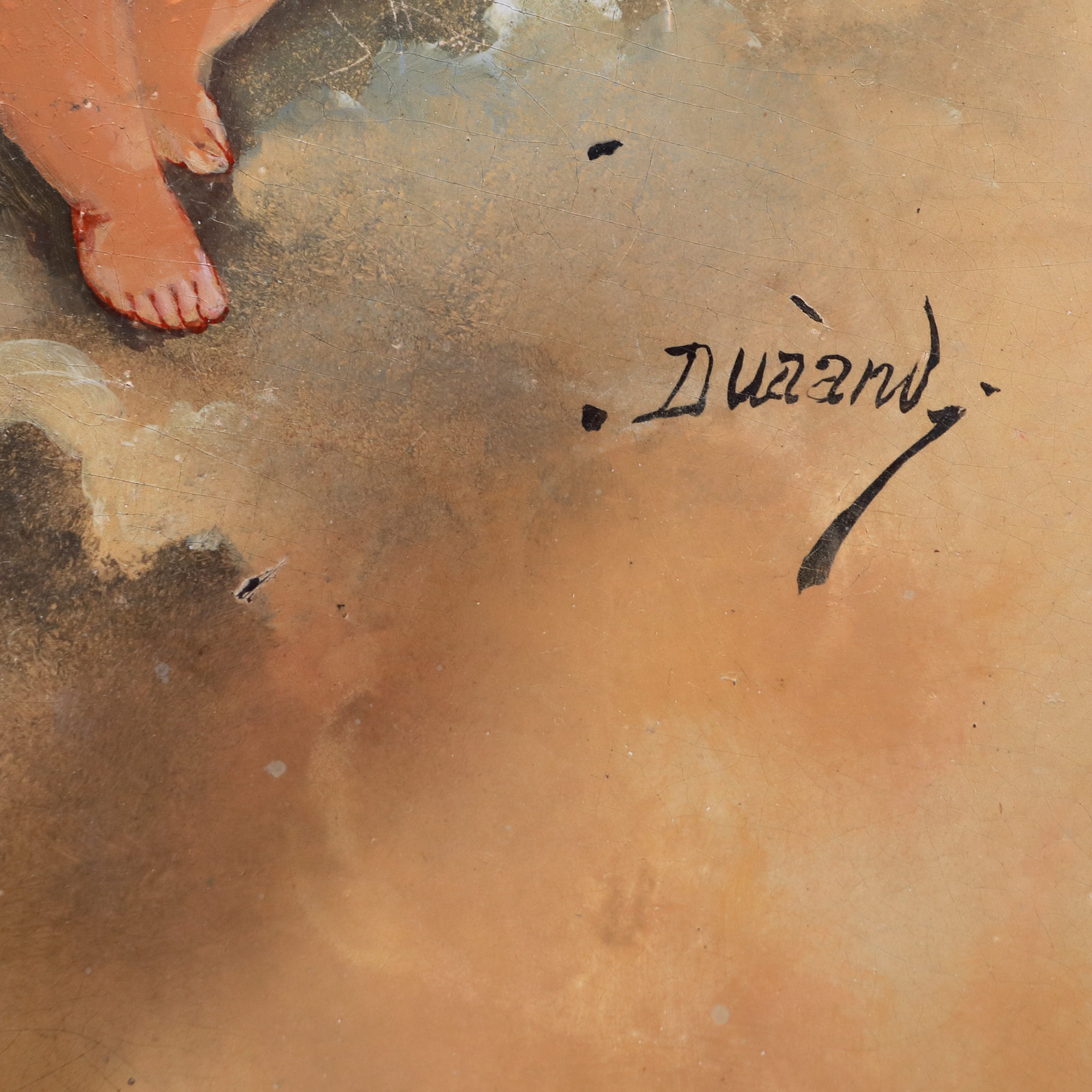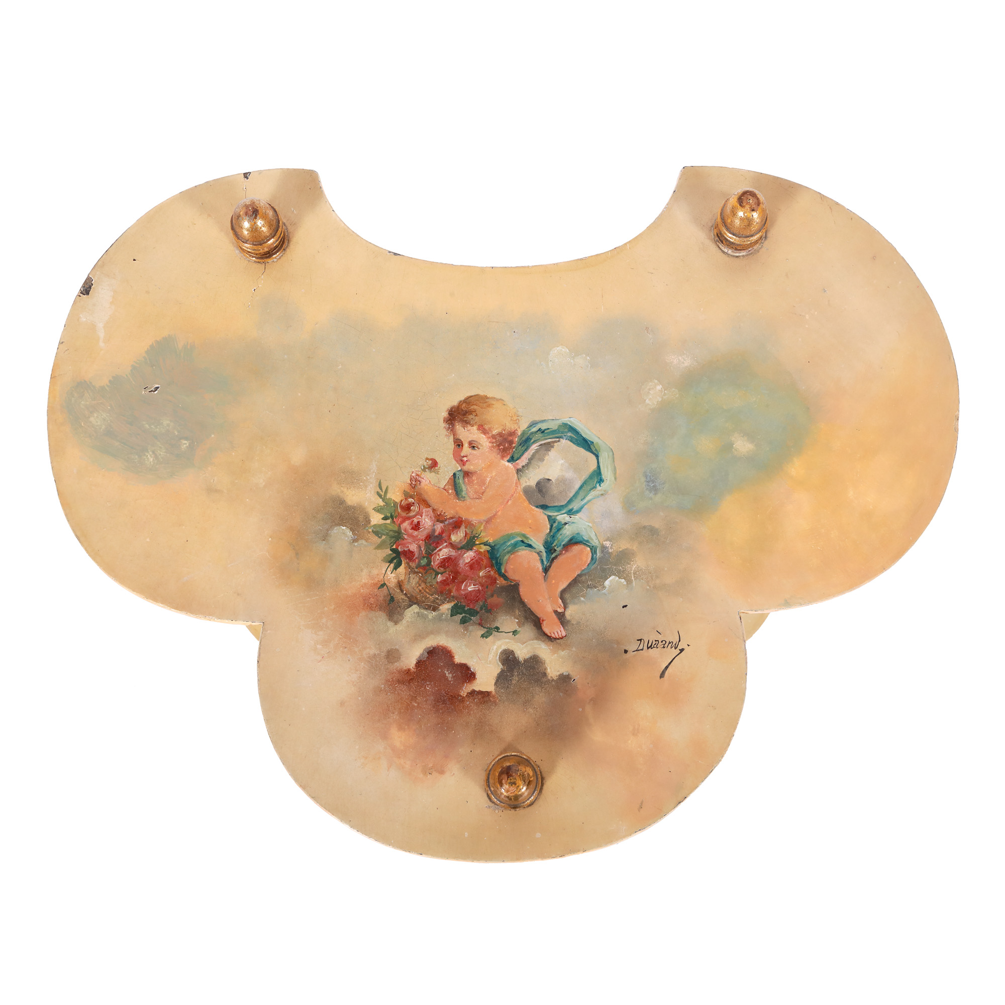 9. Etajeră, manieră Belle Epoque, pictată cu amoraș și trandafiri, semnată, mijlocul sec. XX